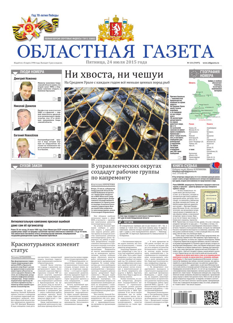 «Областная газета» № 131 (7697) от 24 июля 2015 года