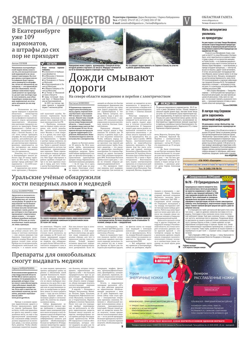 «Областная газета» № 150 (7716) от 20 августа 2015 года