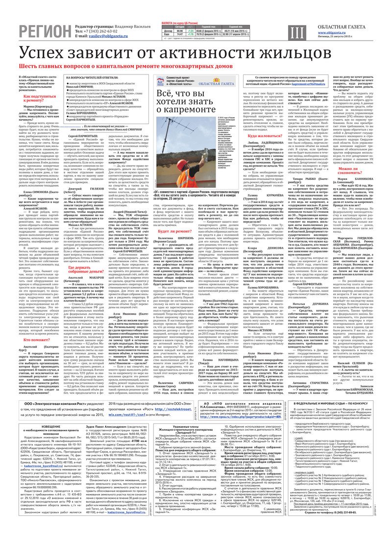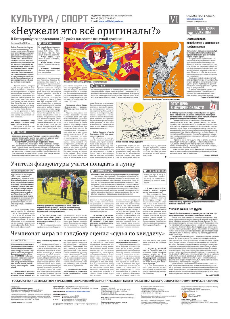 «Областная газета» № 151 (7717) от 21 августа 2015 года