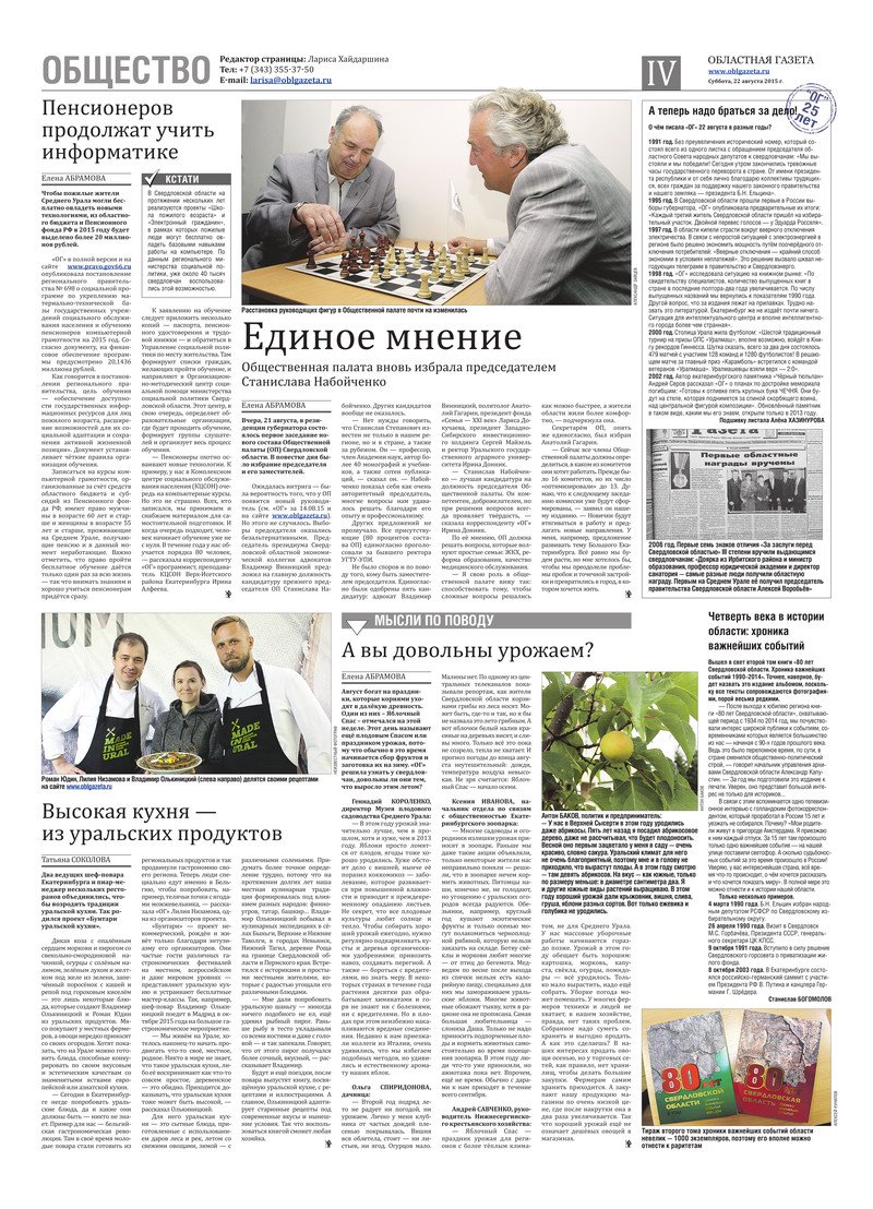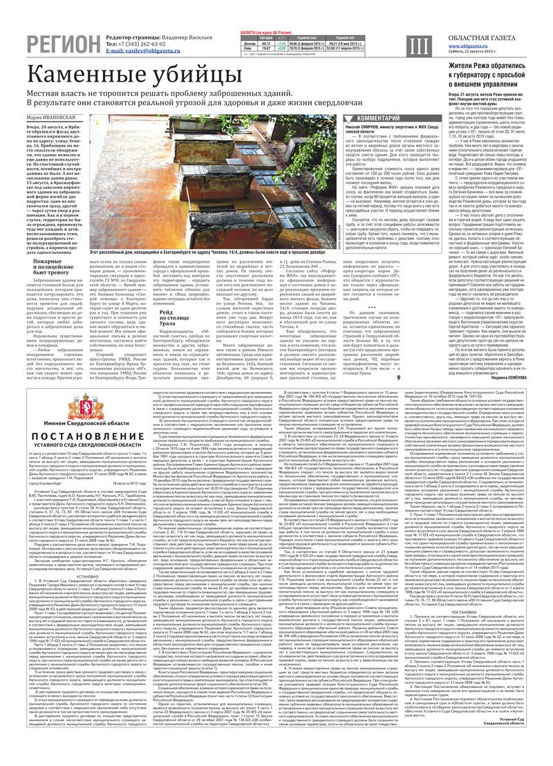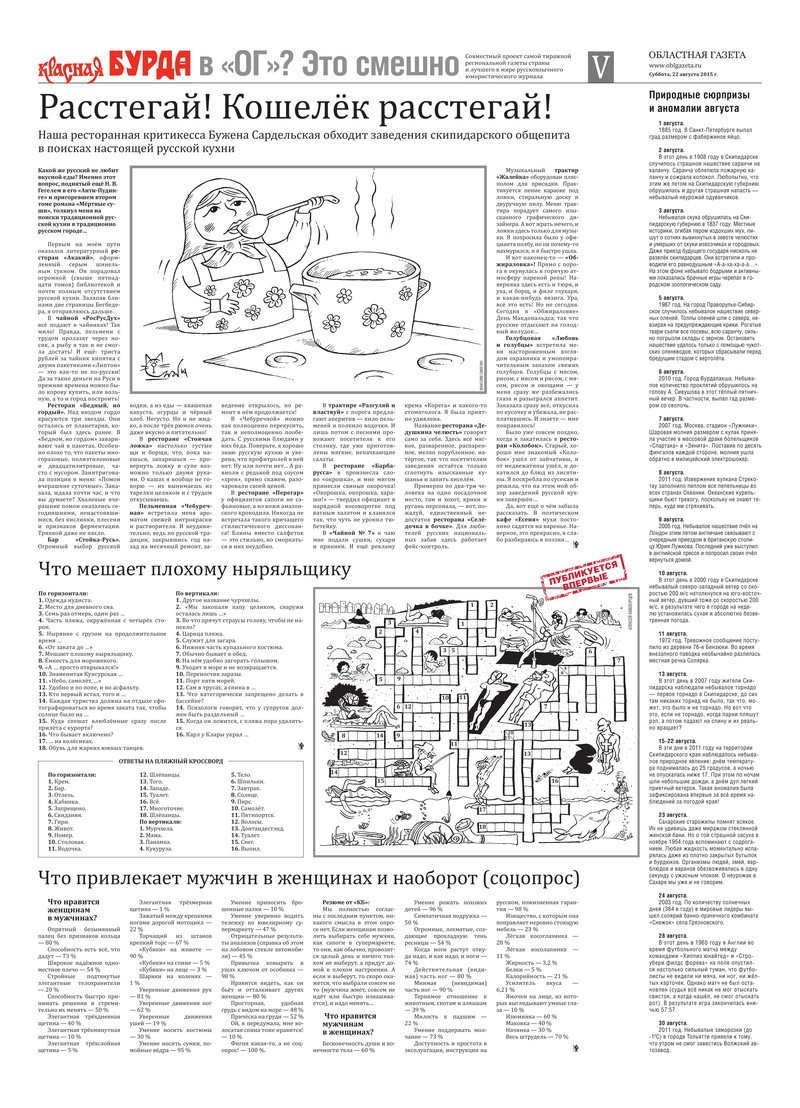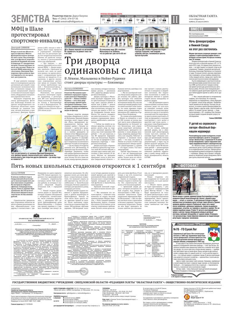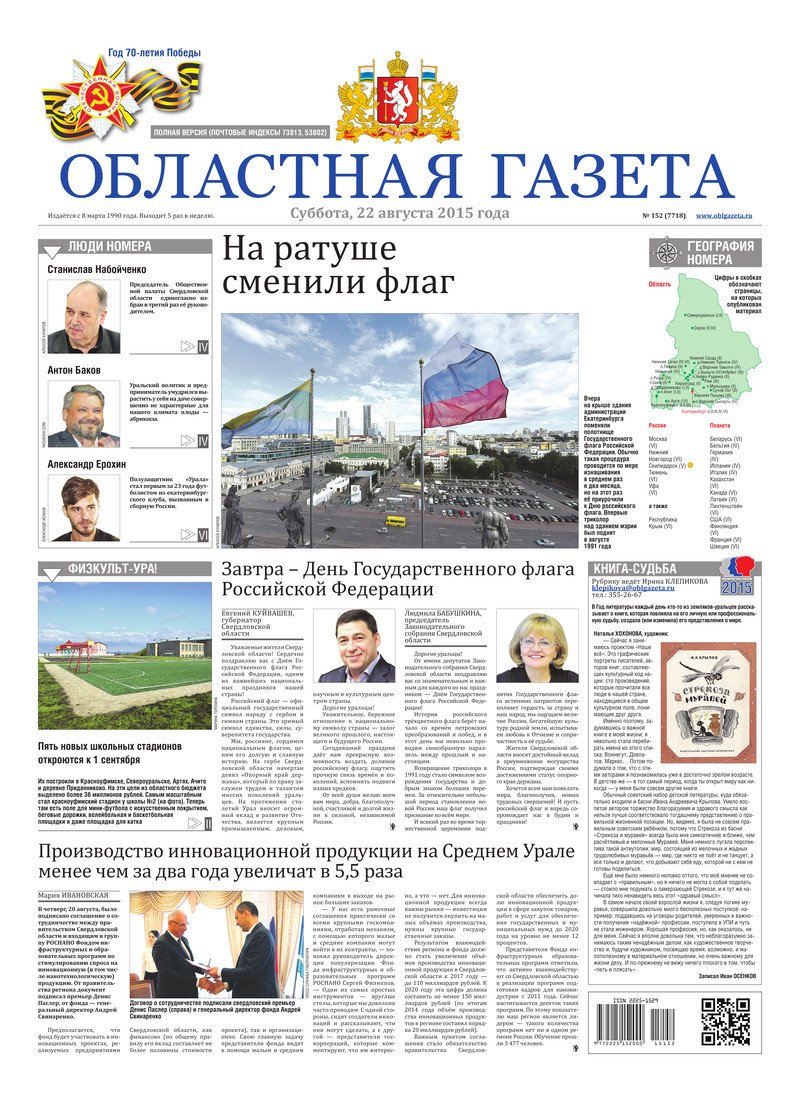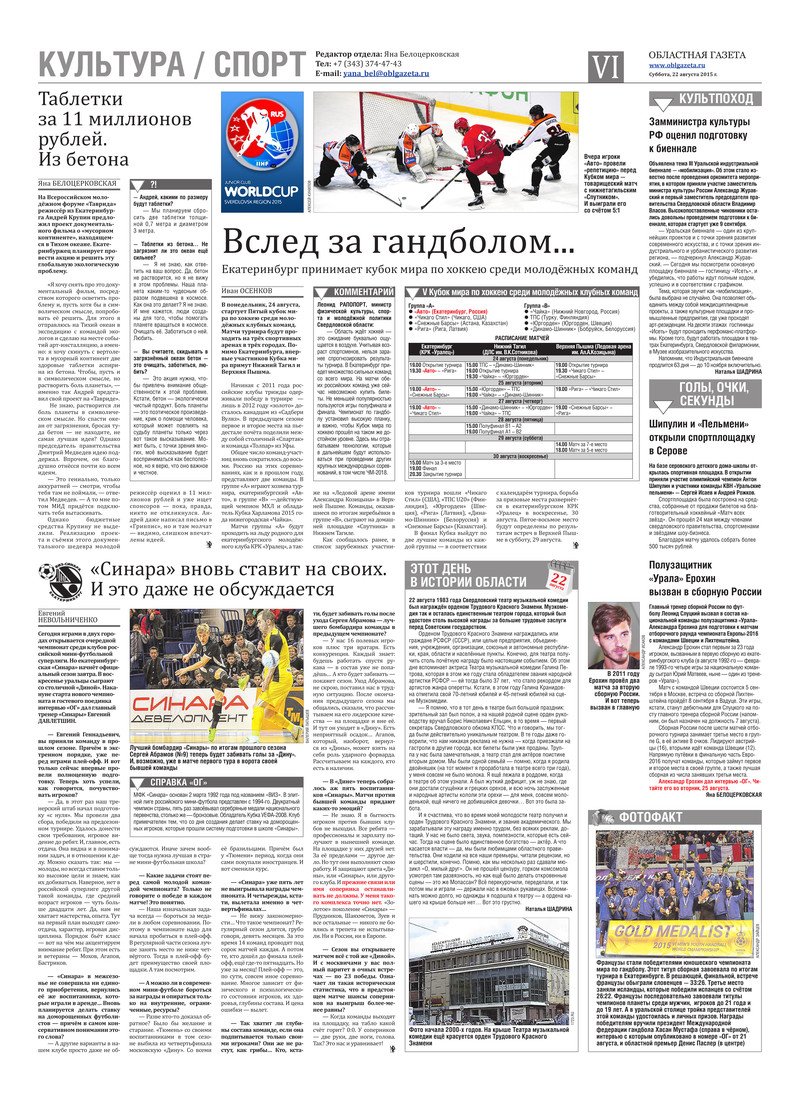 «Областная газета» № 152 (7718) от 22 августа 2015 года