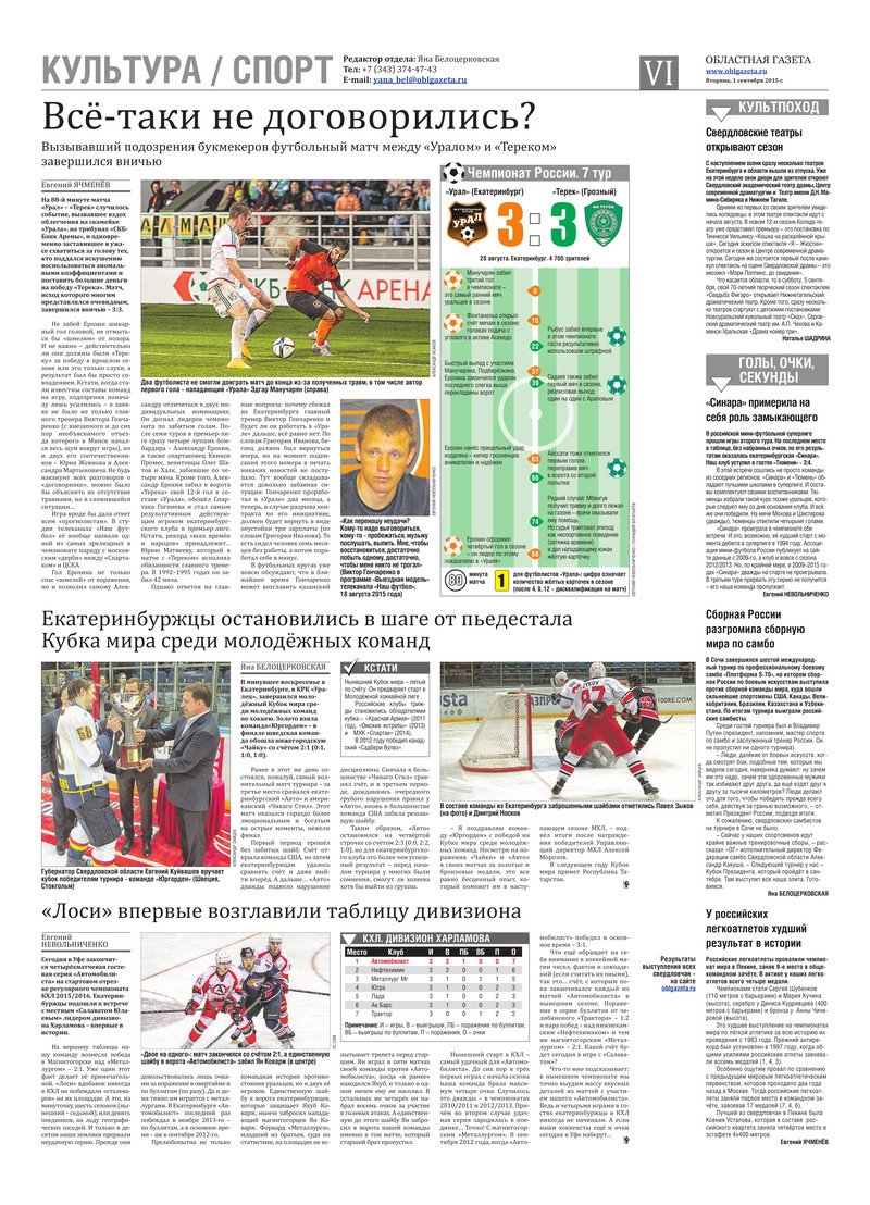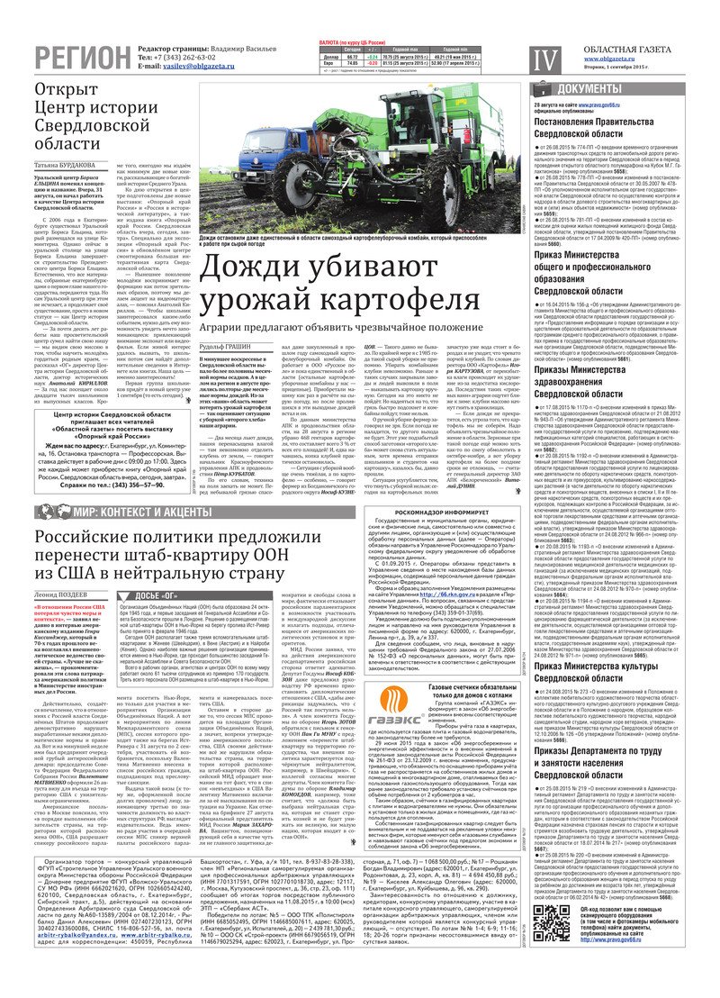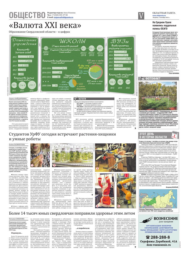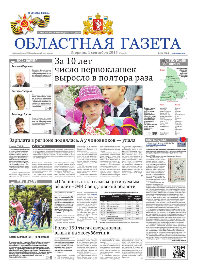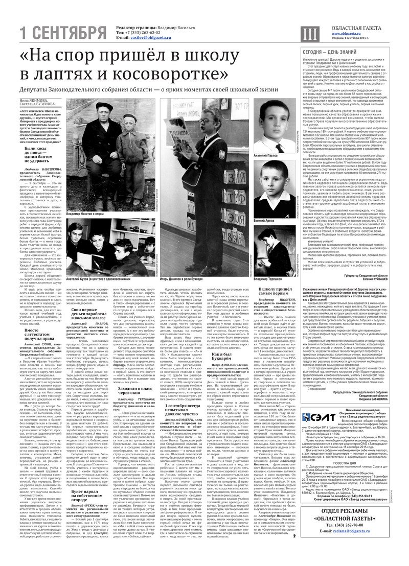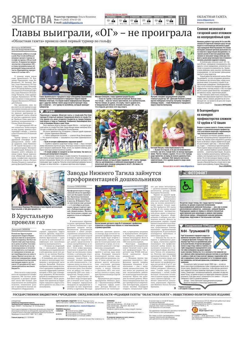 «Областная газета» № 158 (7724) от 1 сентября 2015 года
