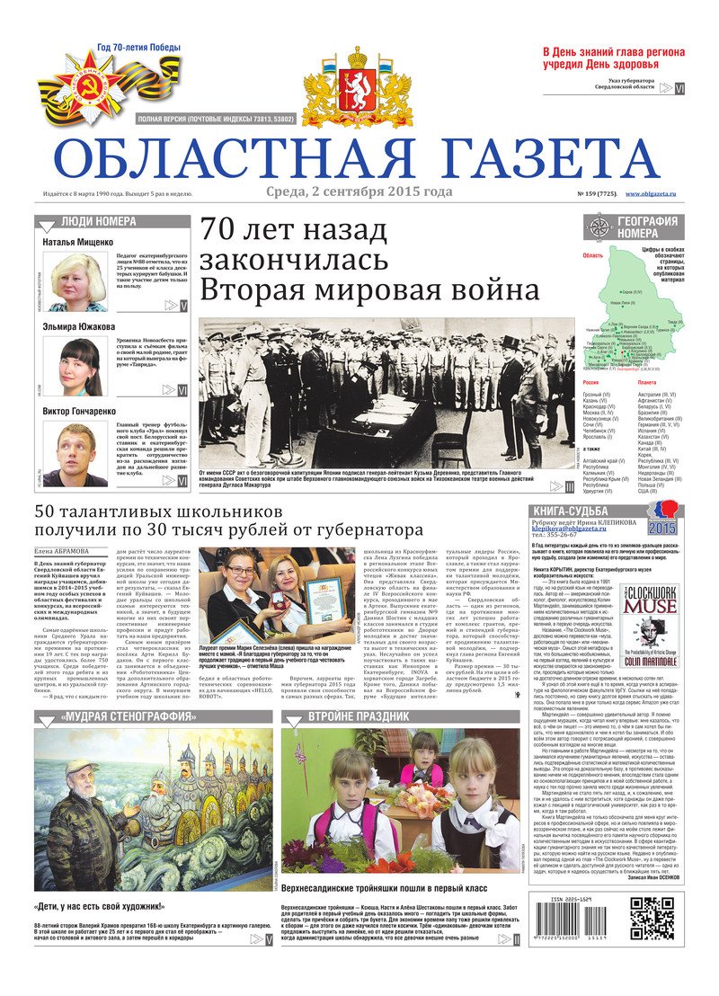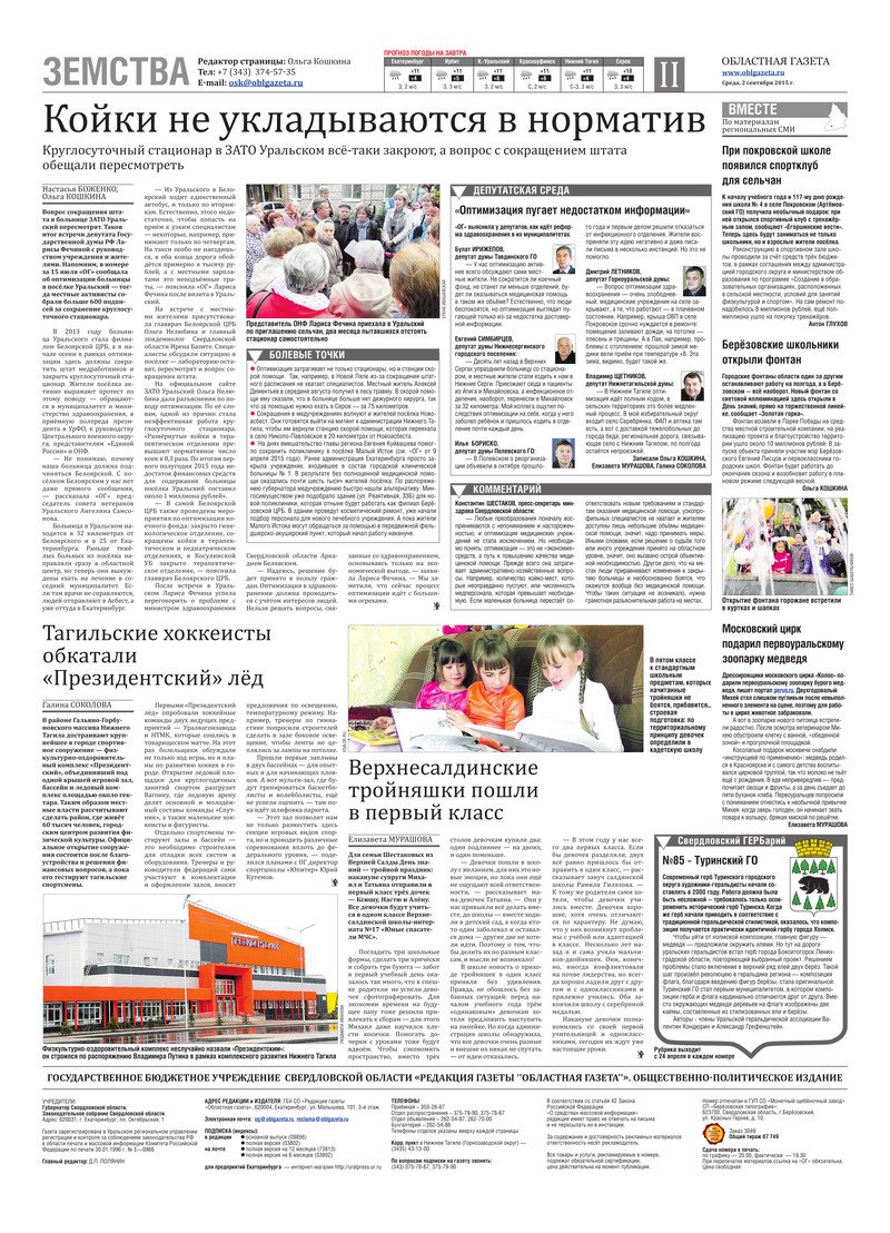 «Областная газета» № 159 (7725) от 2 сентября 2015 года