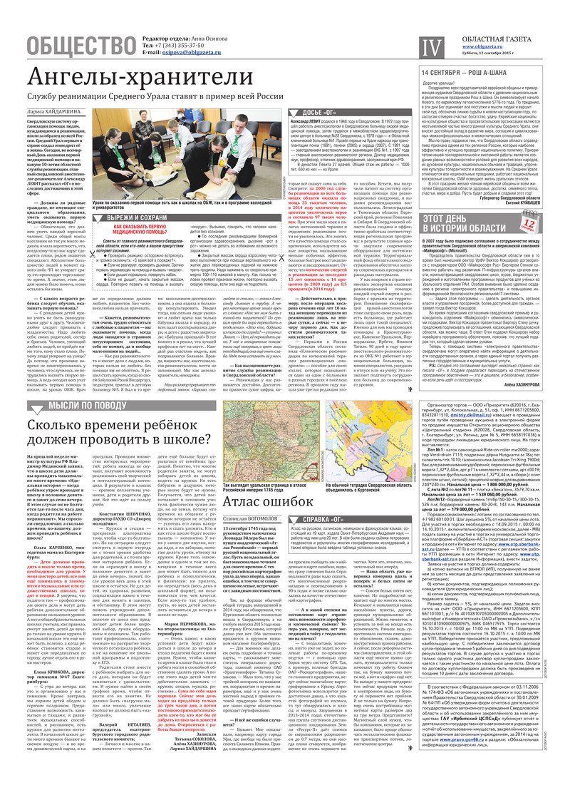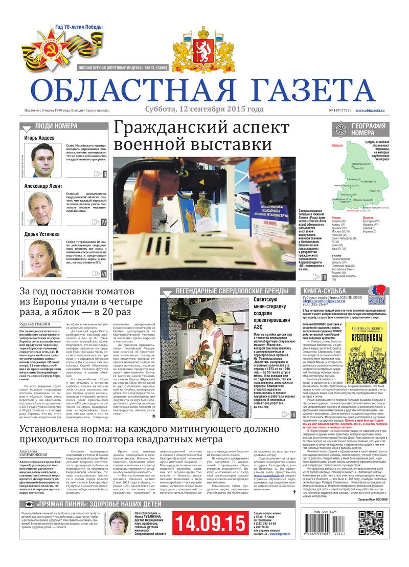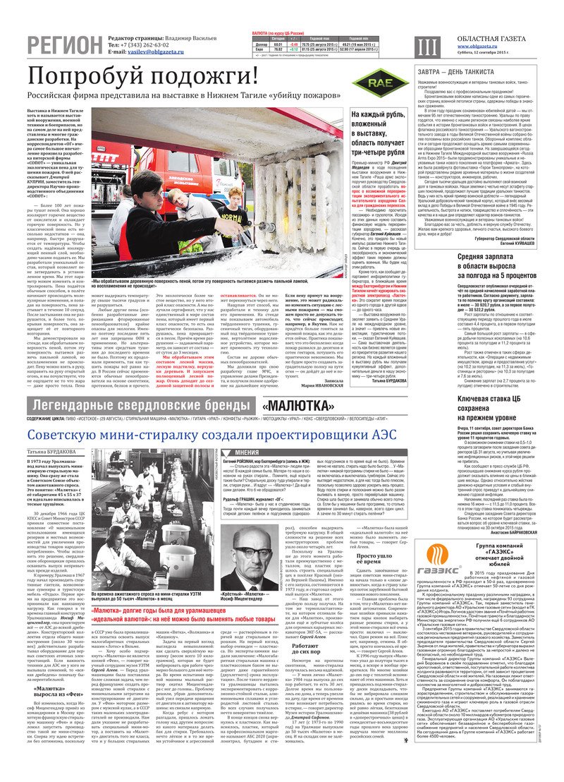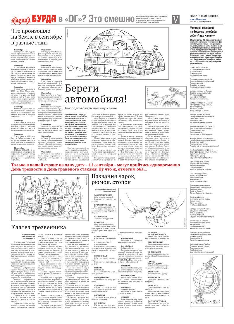 «Областная газета» № 167 (7733) от 12 сентября 2015 года