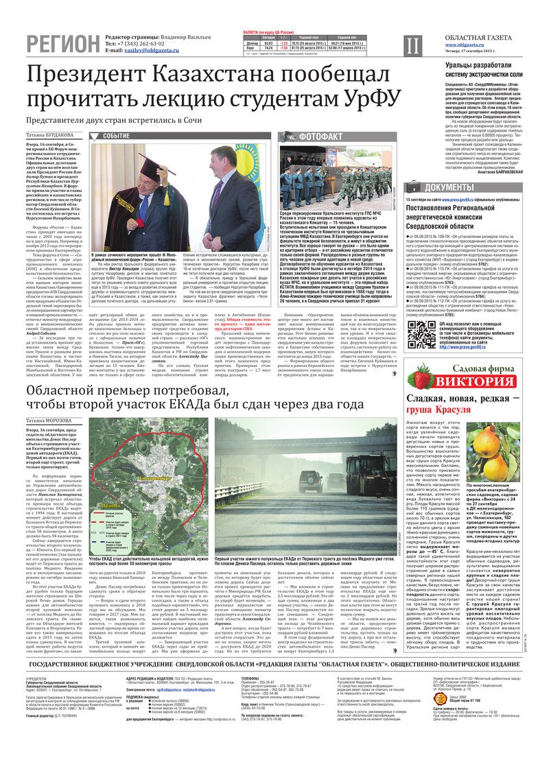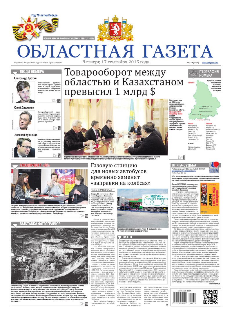 «Областная газета» № 170 (7736) от 17 сентября 2015 года