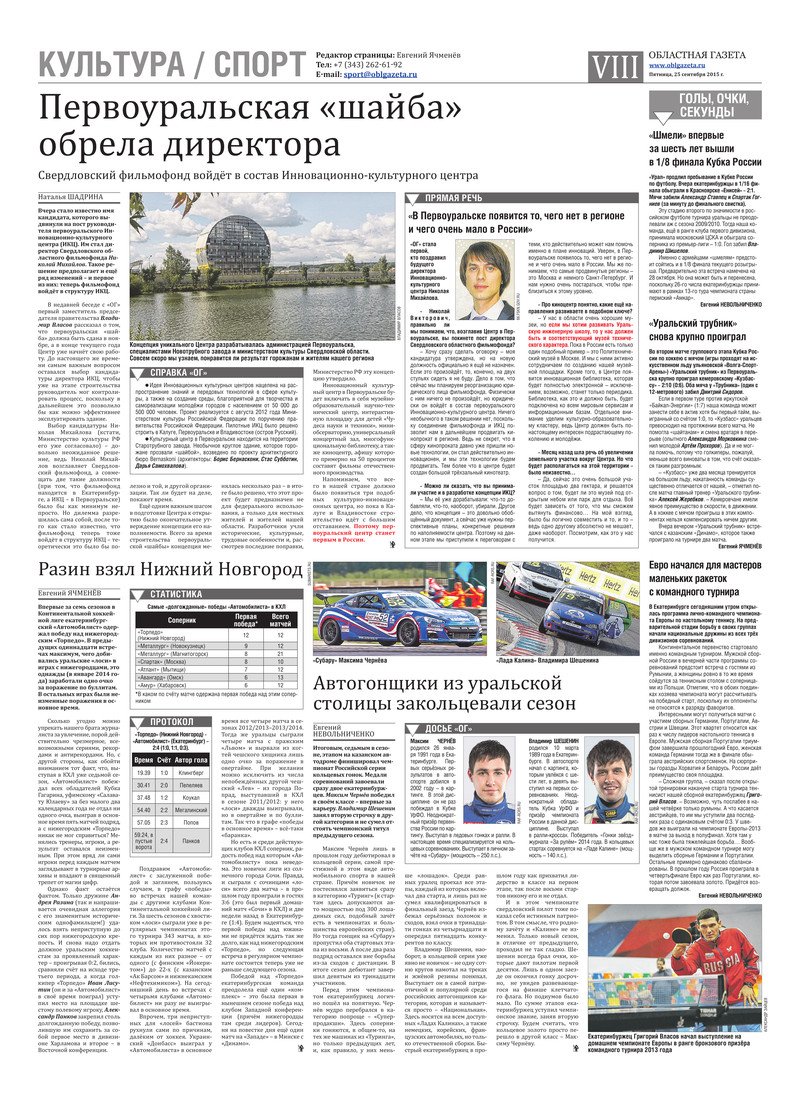 «Областная газета» № 176 (7742) от 25 сентября 2015 года