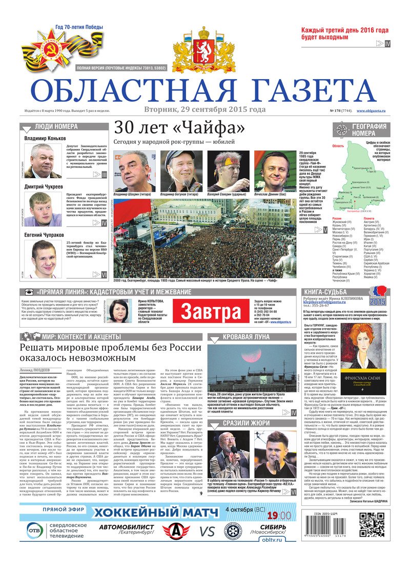 «Областная газета» № 178 (7744) от 29 сентября 2015 года