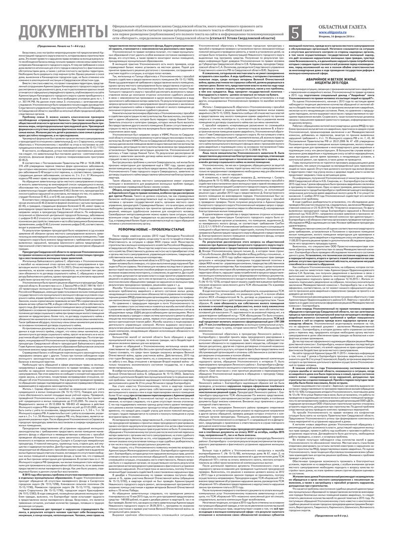 «Областная газета» № 27 (7836) от 16 февраля 2016 года