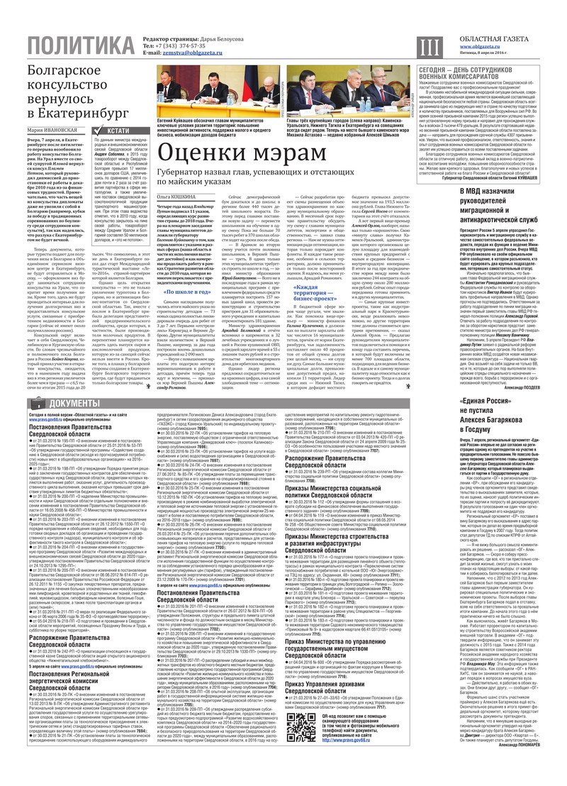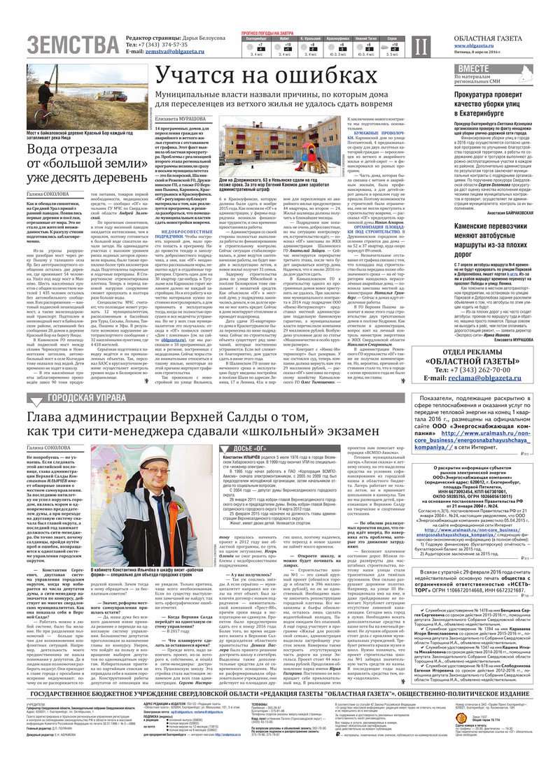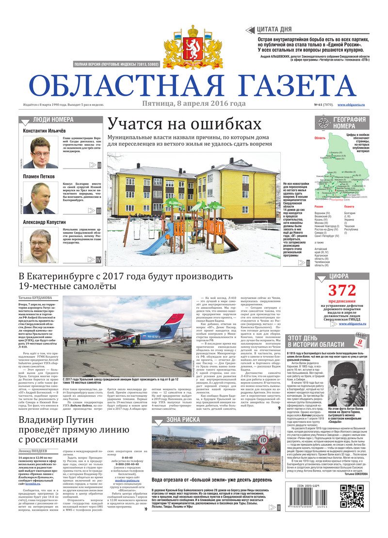 «Областная газета» № 61 (7870) от 8 апреля 2016 года