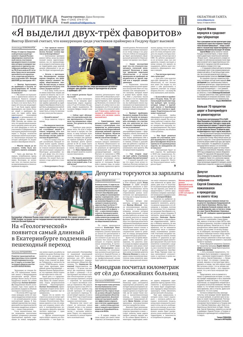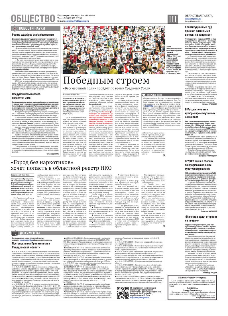 «Областная газета» № 64 (7873) от 13 апреля 2016 года