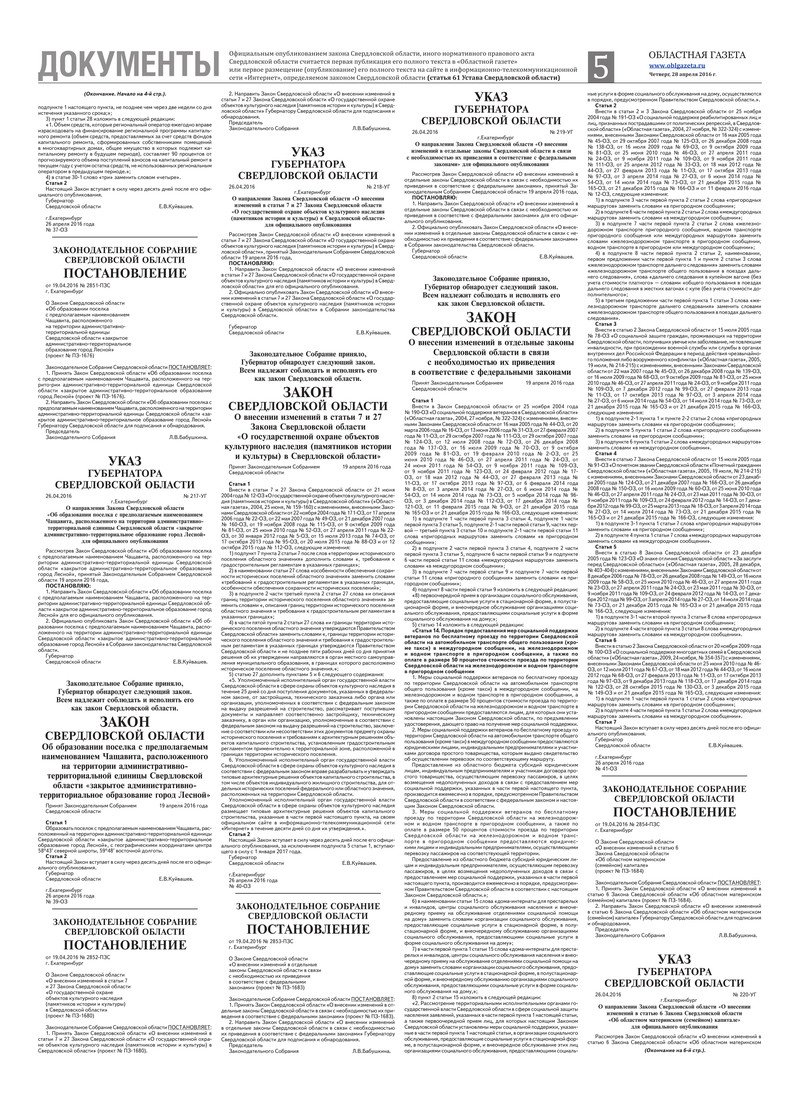 «Областная газета» № 75 (7884) от 28 апреля 2016 года