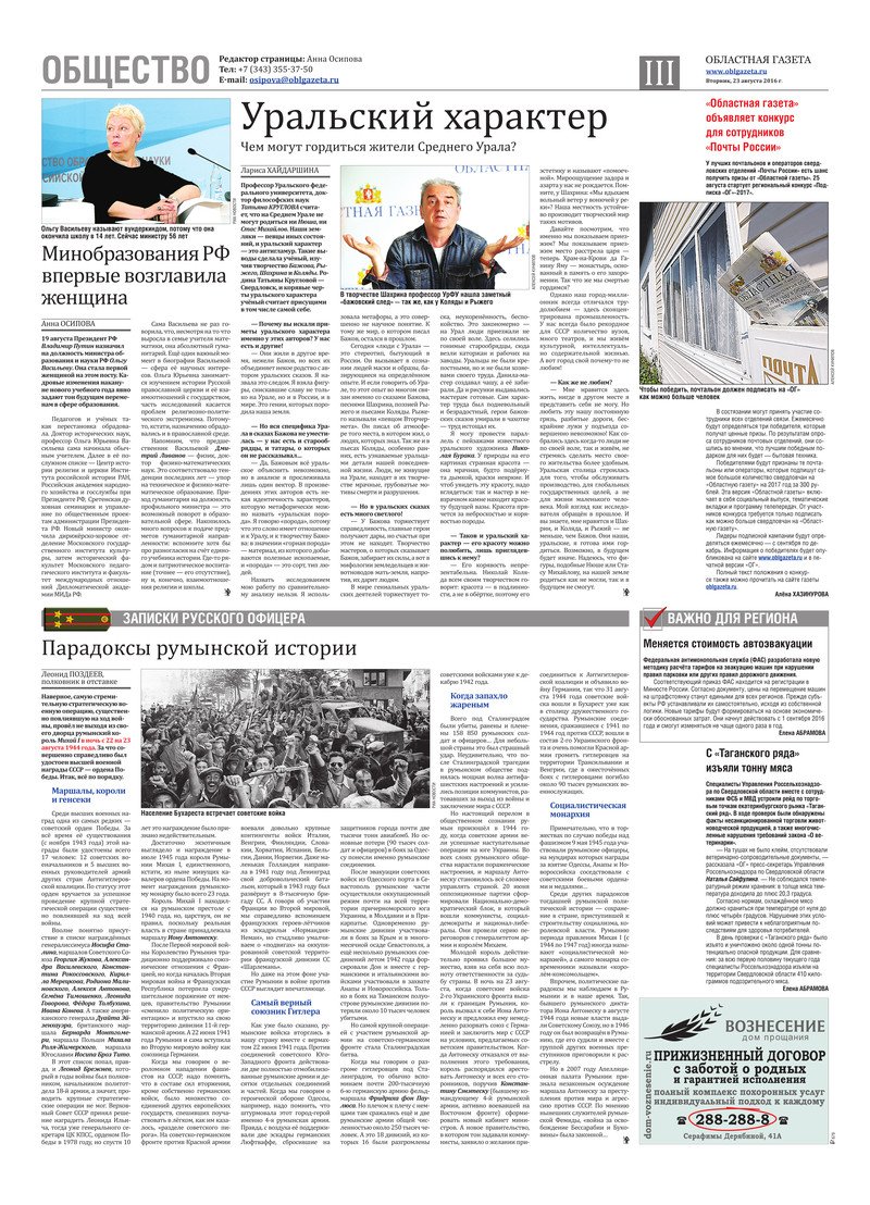 «Областная газета» № 154 (7963) от 23 августа 2016 года