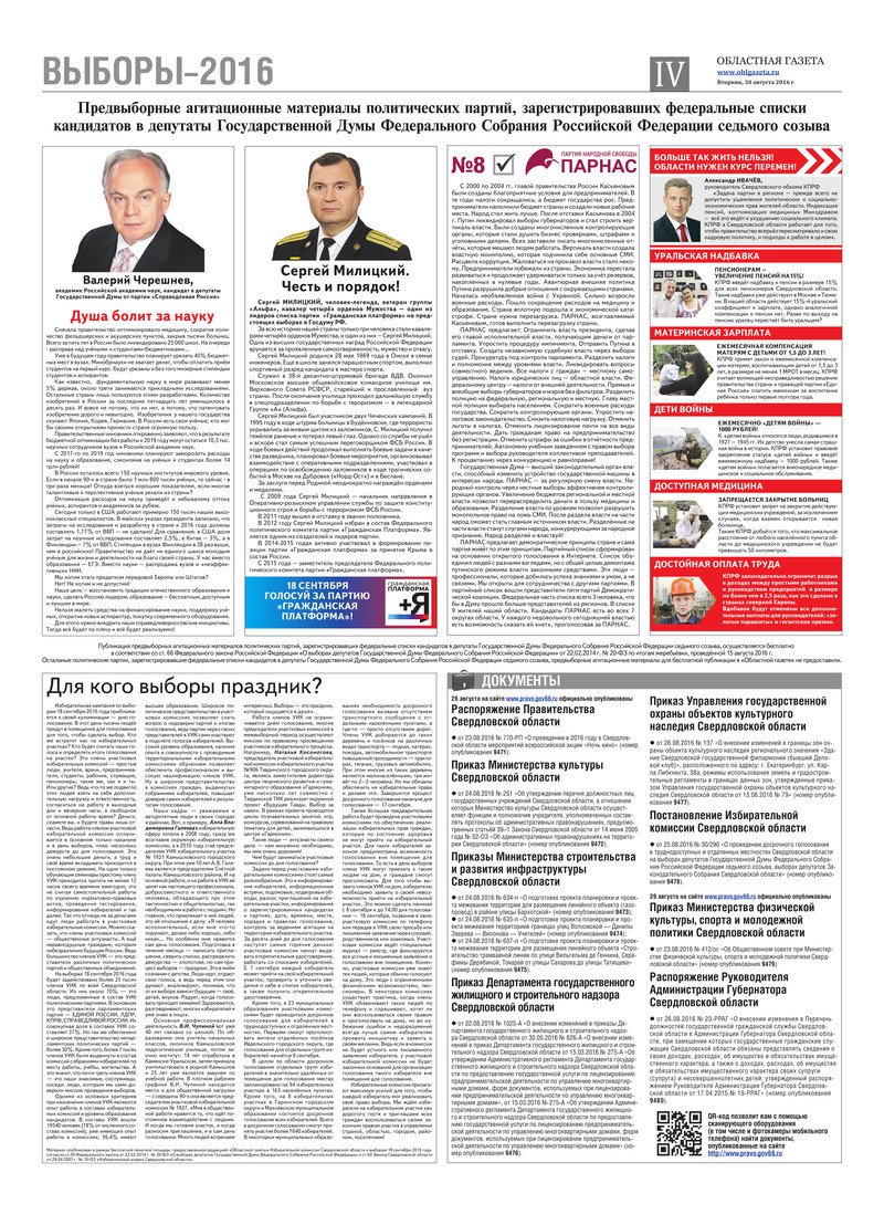 «Областная газета» № 159 (7968) от 30 августа 2016 года