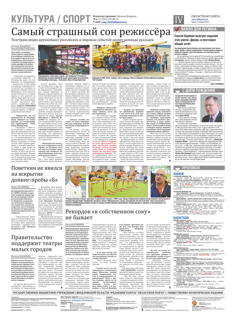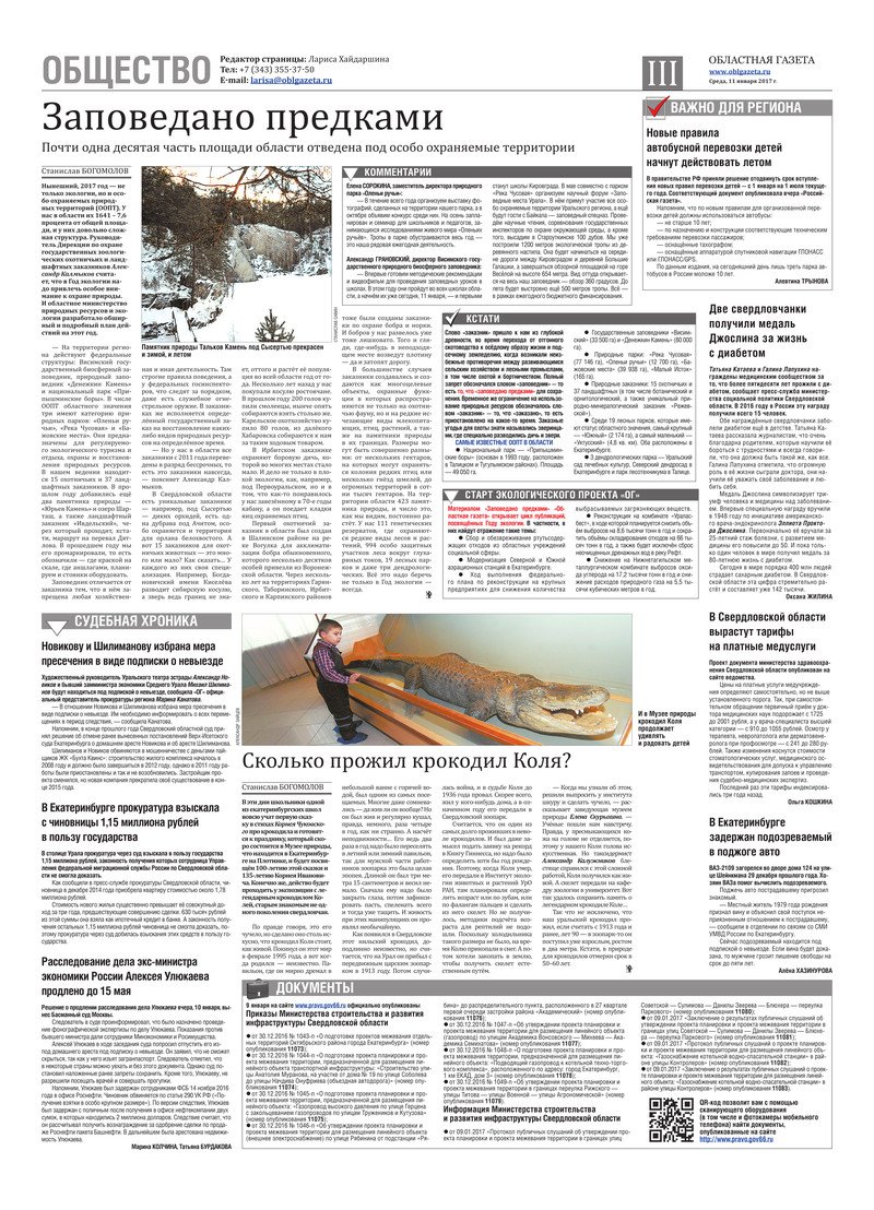 «Областная газета» № 3 (8058) от 11 января 2017 года