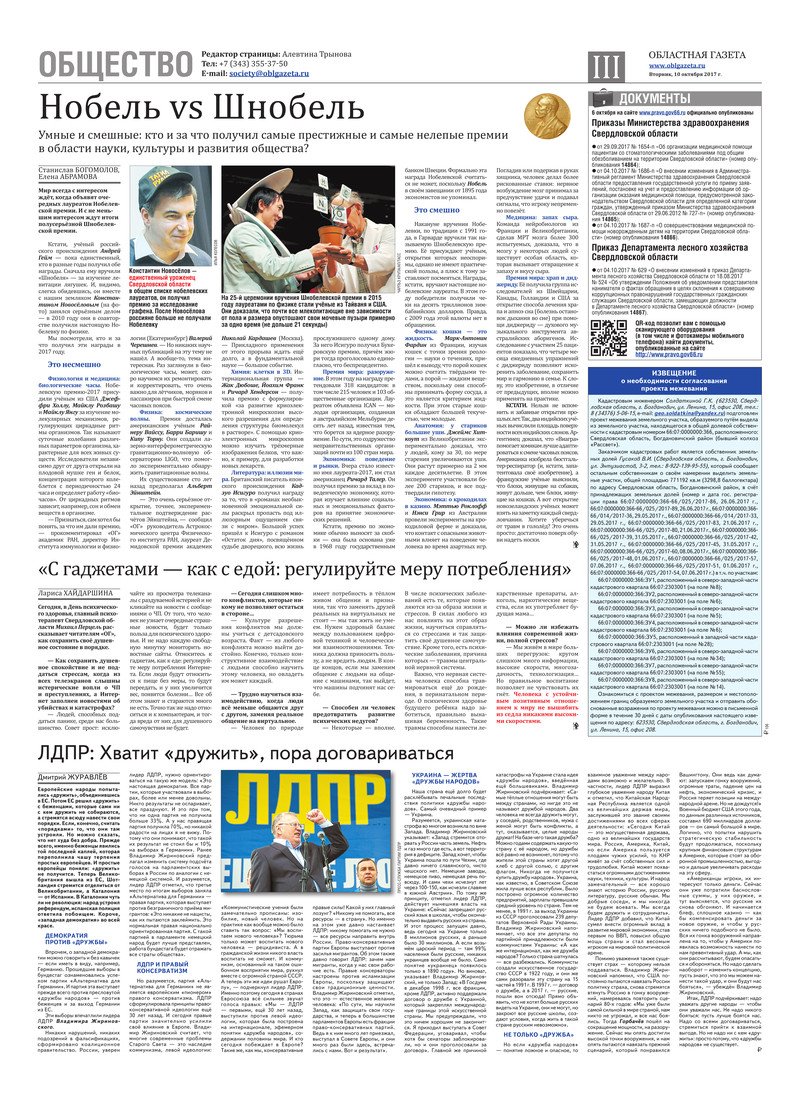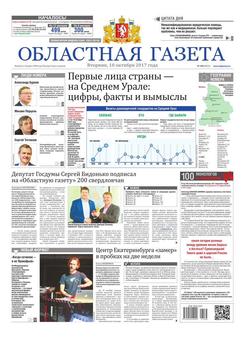 «Областная газета» № 188 (8243) от 10 октября 2017 года