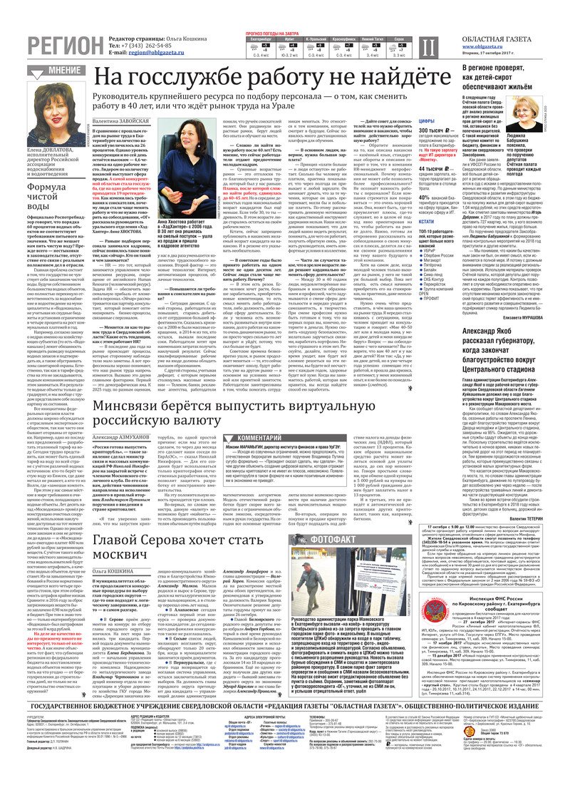 «Областная газета» № 193 (8248) от 17 октября 2017 года