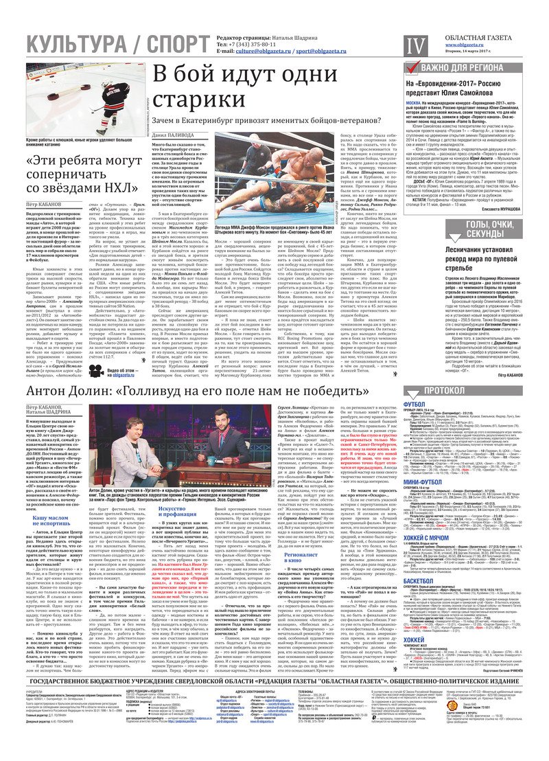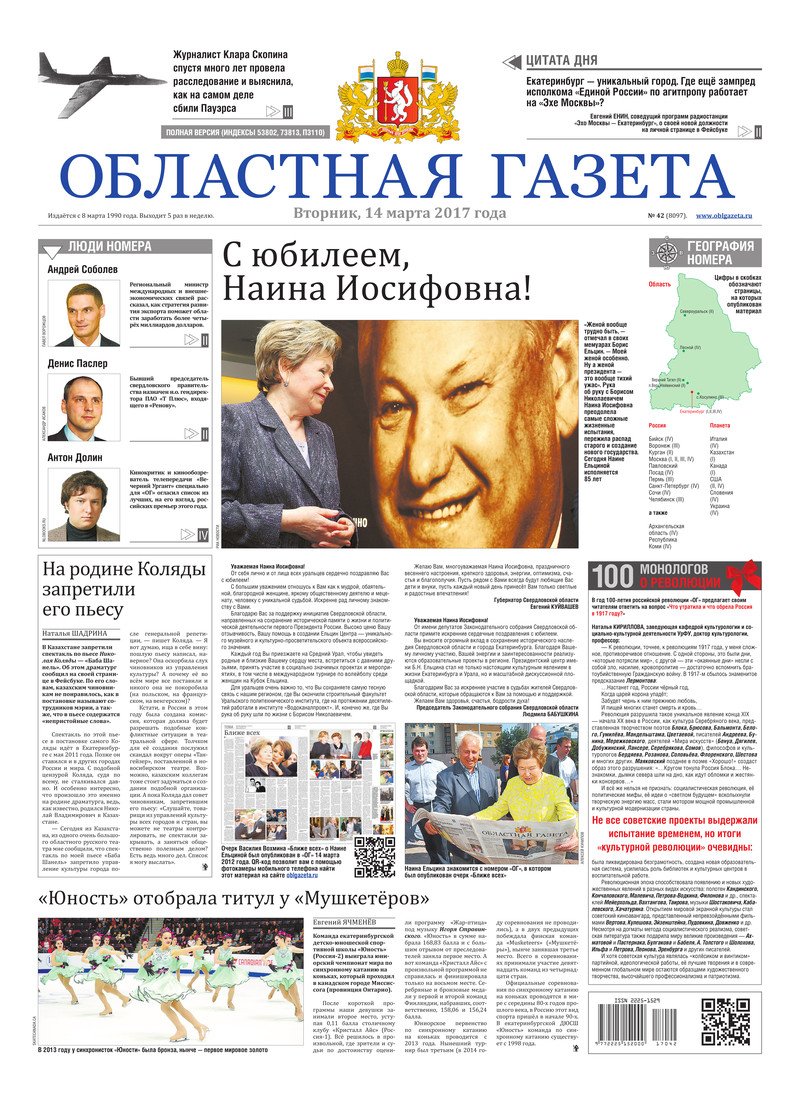 «Областная газета» № 42 (8097) от 14 марта 2017 года