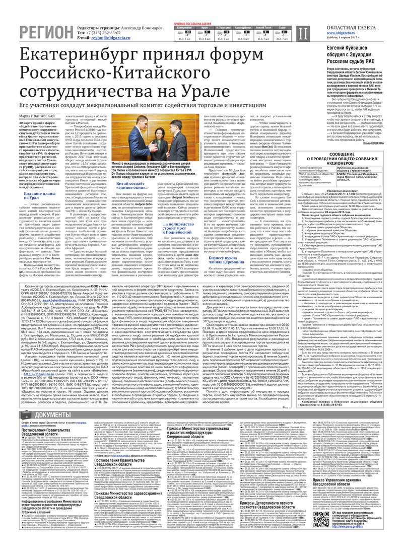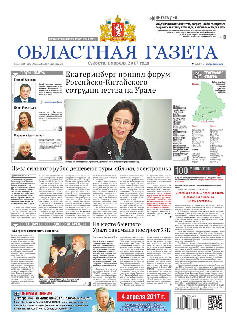 «Областная газета» № 56 (8111) от 1 апреля 2017 года