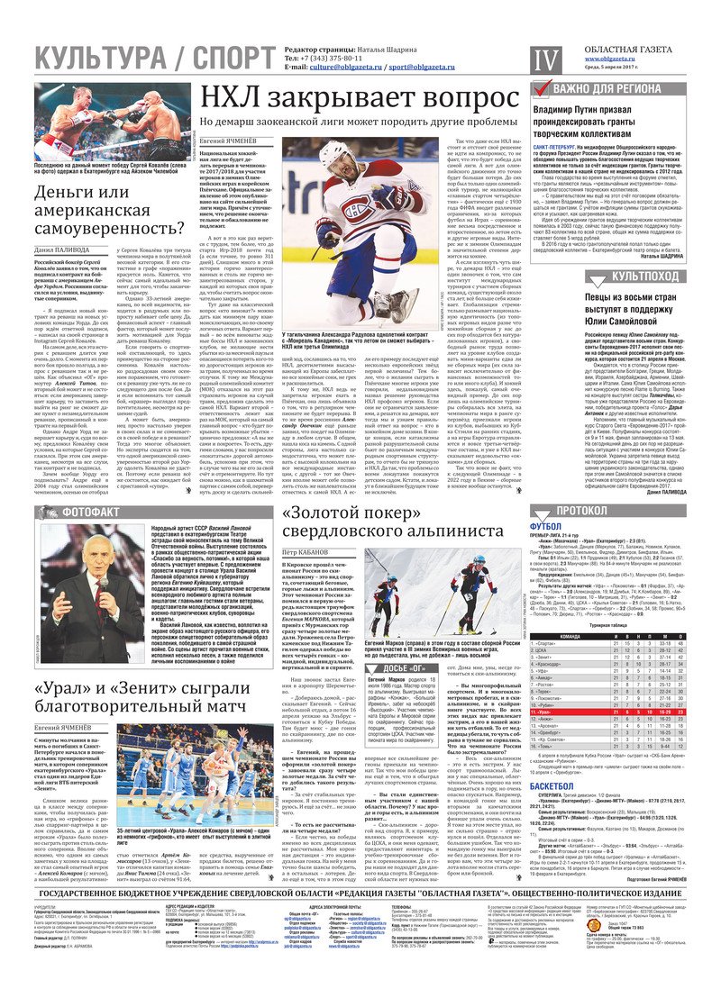 «Областная газета» № 58 (8113) от 5 апреля 2017 года