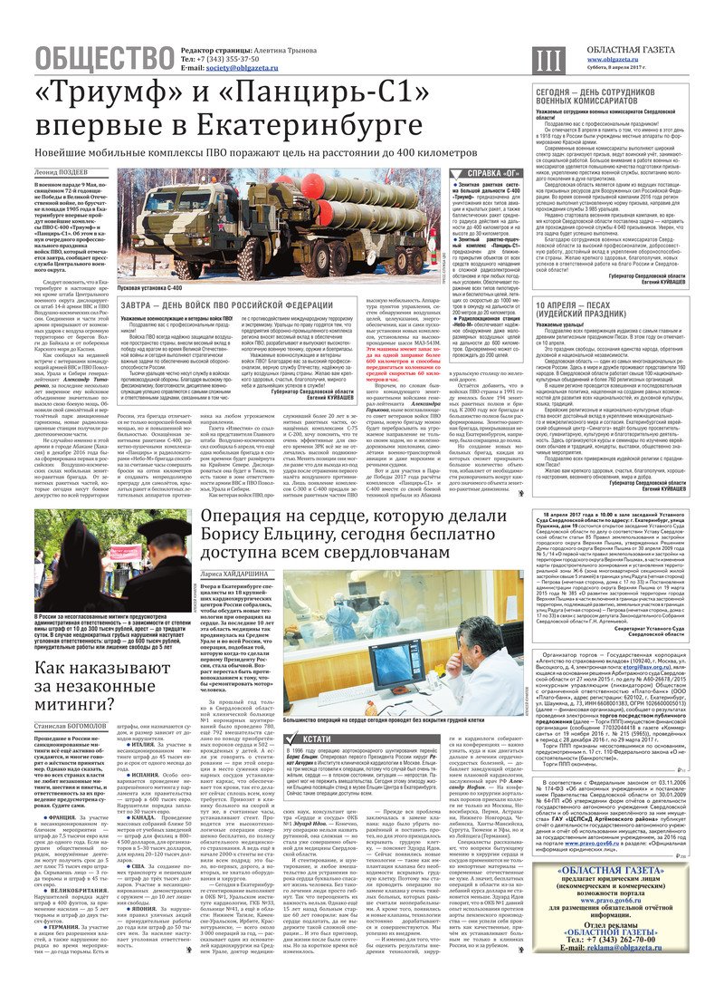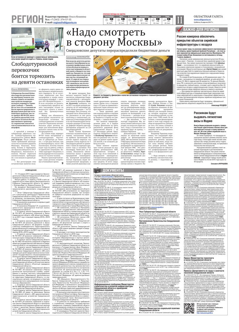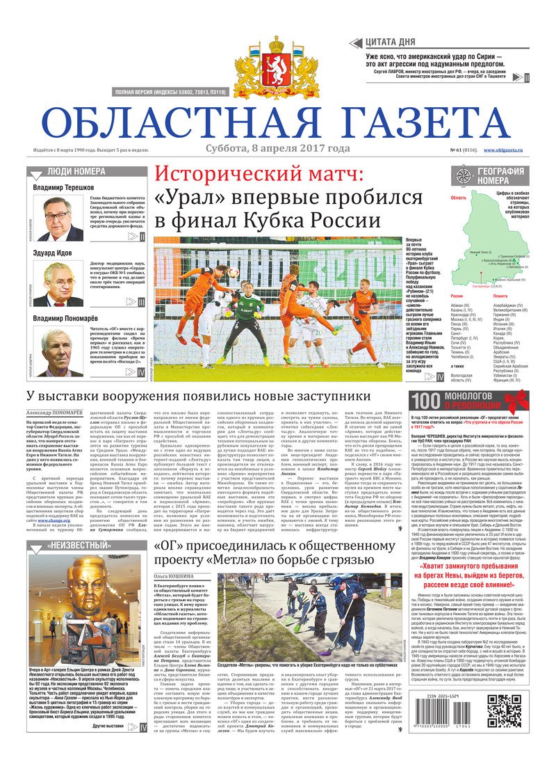 «Областная газета» № 61 (8116) от 8 апреля 2017 года