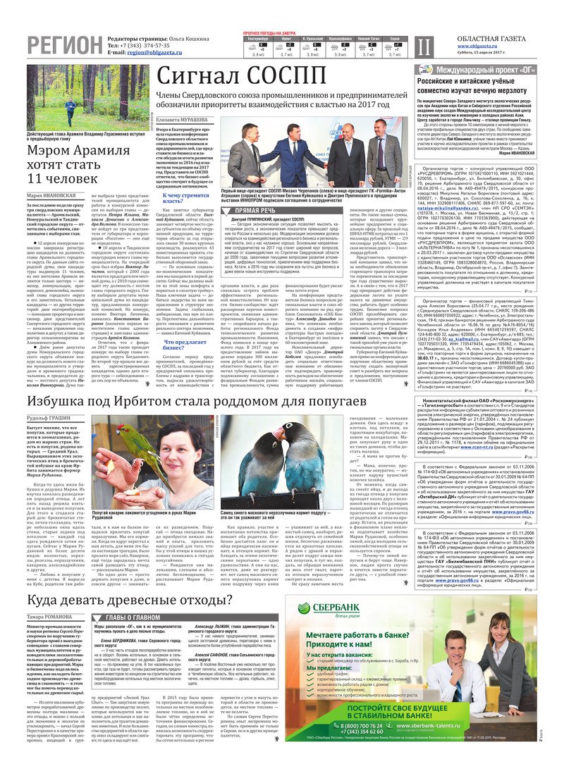 «Областная газета» № 66 (8121) от 15 апреля 2017 года