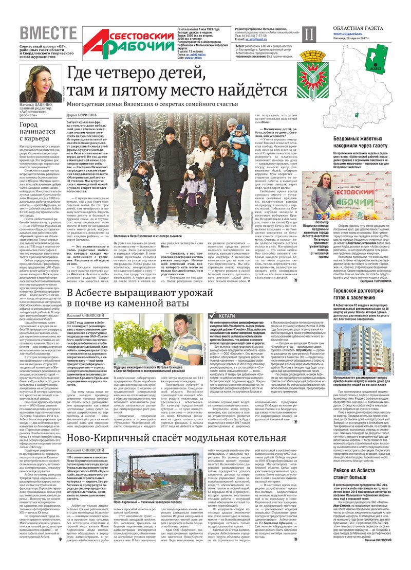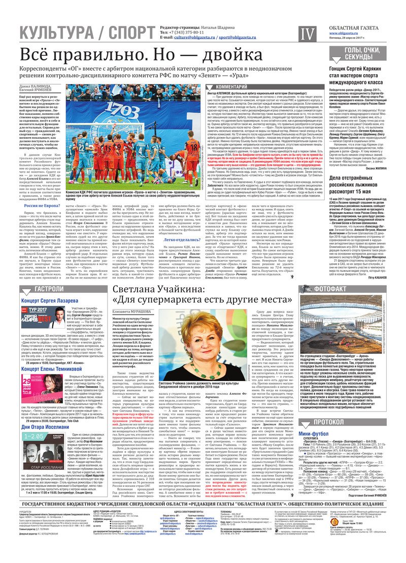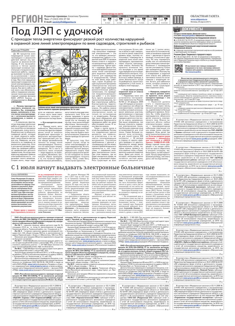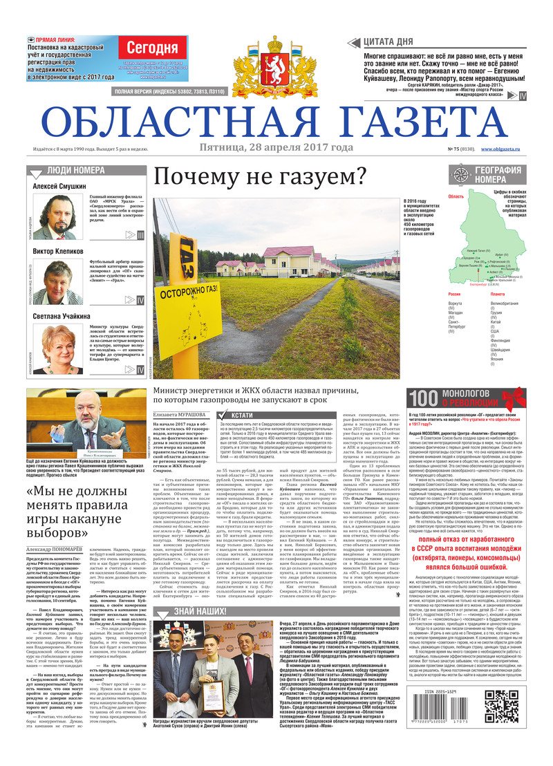 «Областная газета» № 75 (8130) от 28 апреля 2017 года