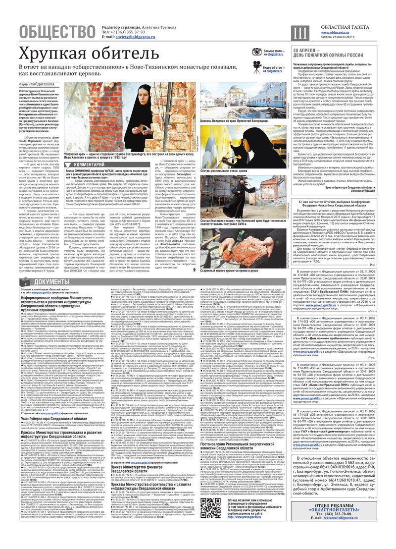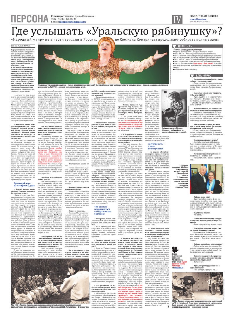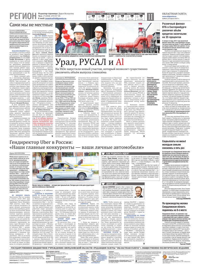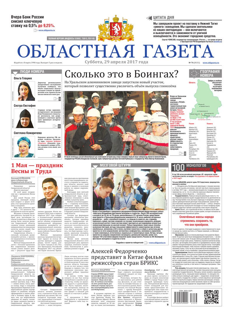 «Областная газета» № 76 (8131) от 29 апреля 2017 года