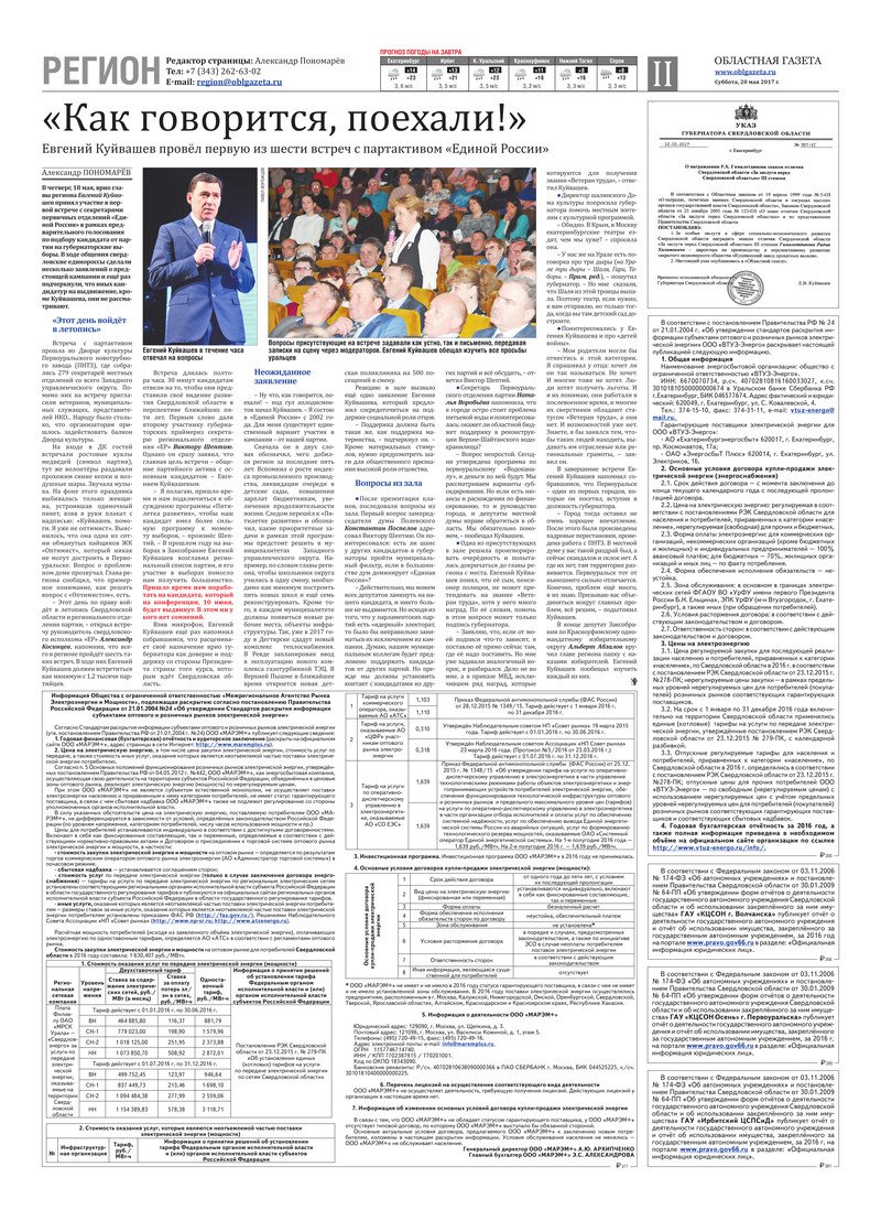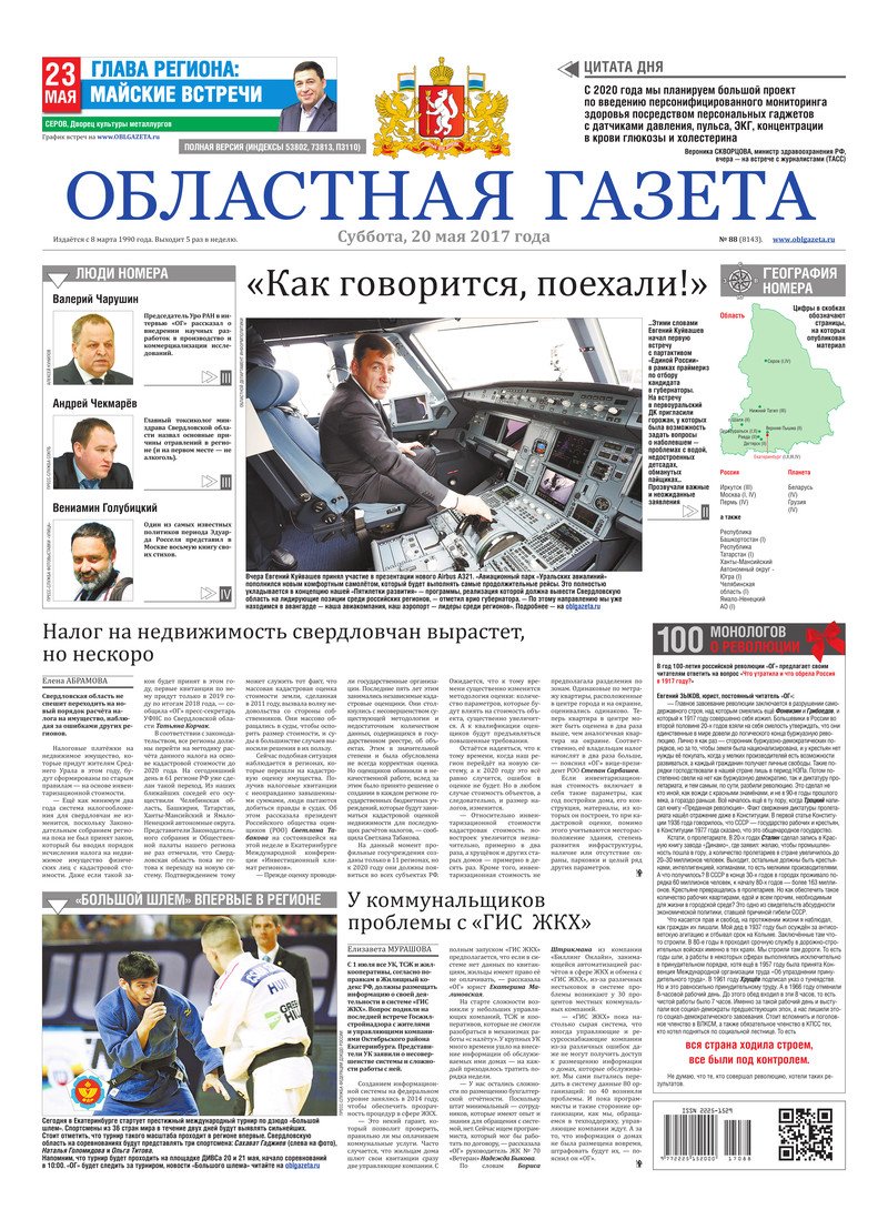 «Областная газета» № 88 (8143) от 20 мая 2017 года