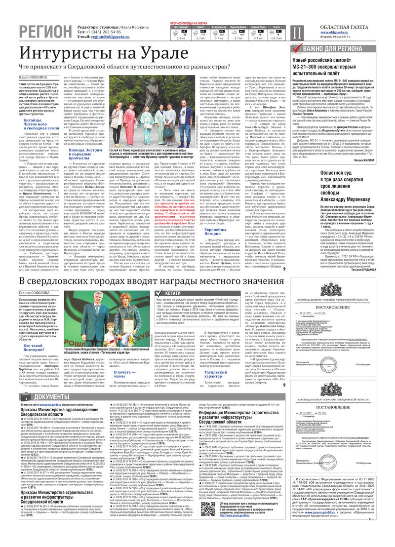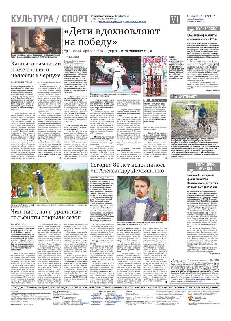«Областная газета» № 94 (8149) от 30 мая 2017 года