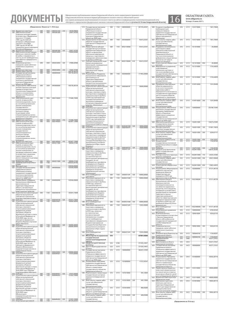«Областная газета» № 105 (8160) от 15 июня 2017 года