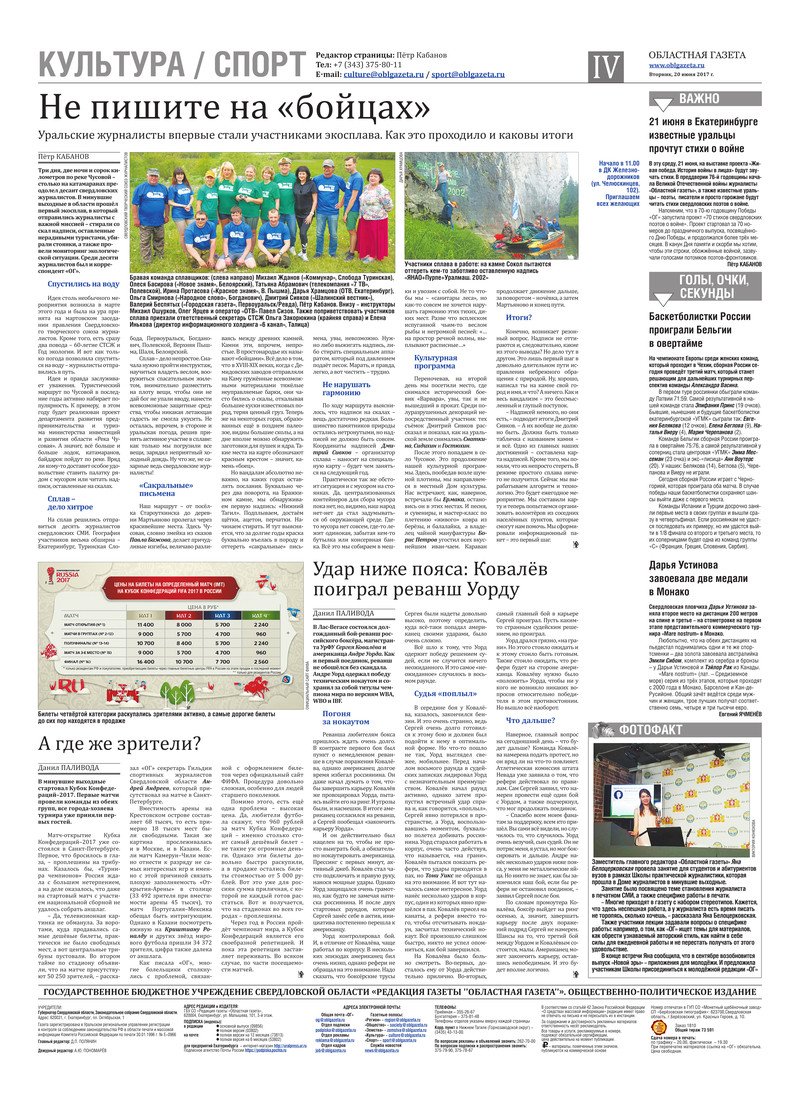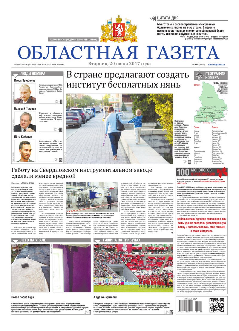 «Областная газета» № 108 (8163) от 20 июня 2017 года