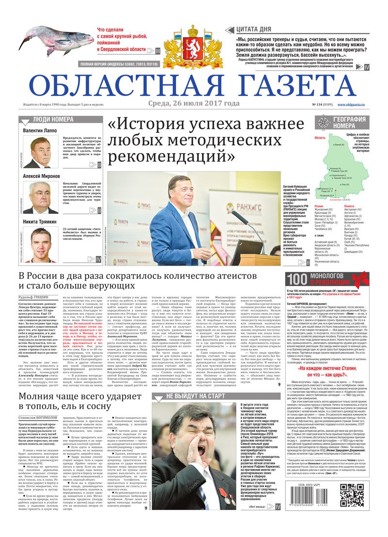 «Областная газета» № 134 (8189) от 26 июля 2017 года