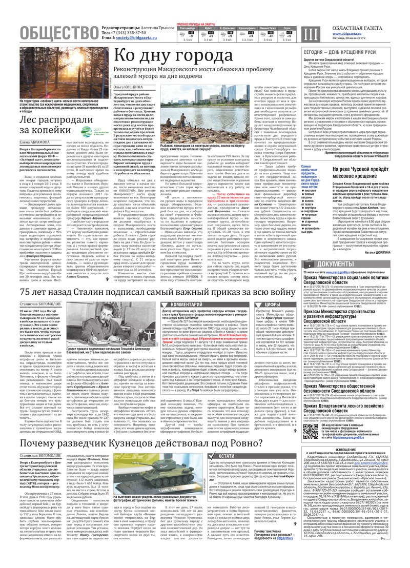 «Областная газета» № 136 (8191) от 28 июля 2017 года