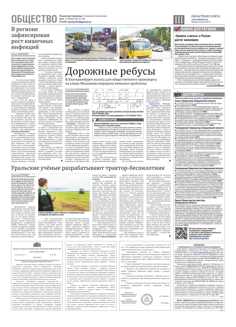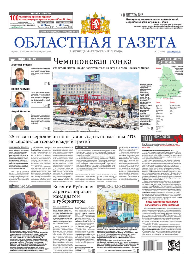 «Областная газета» № 141 (8196) от 4 августа 2017 года