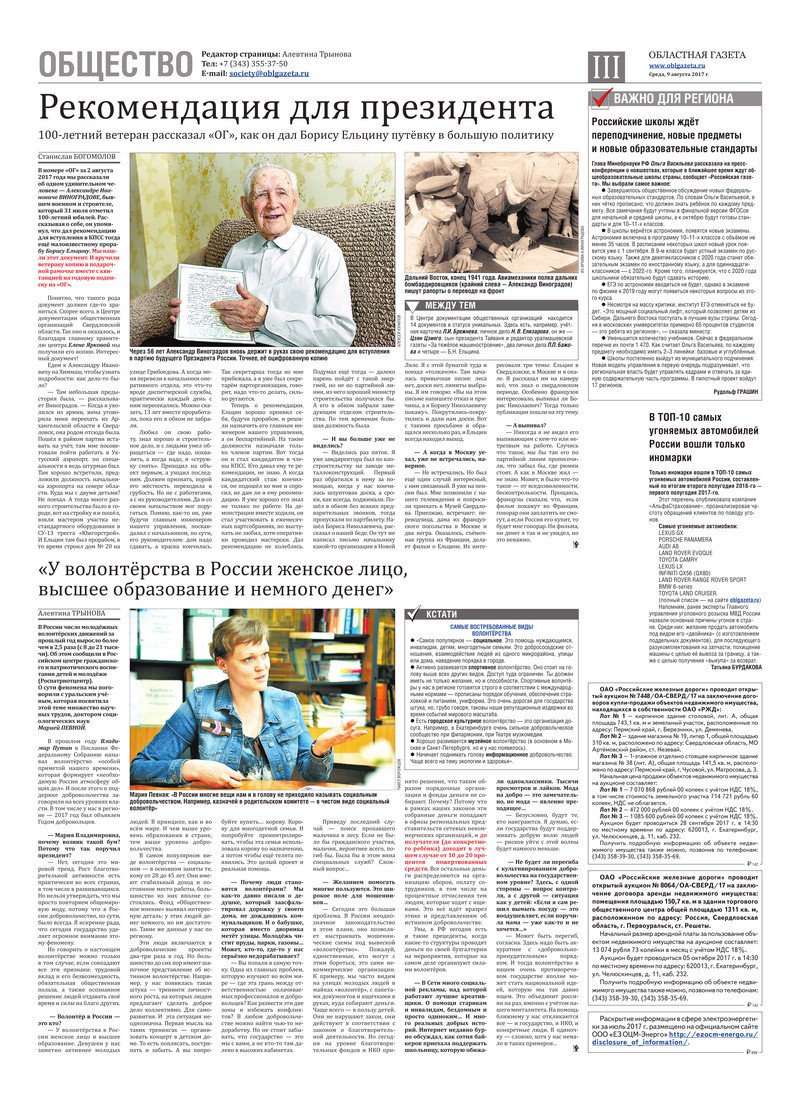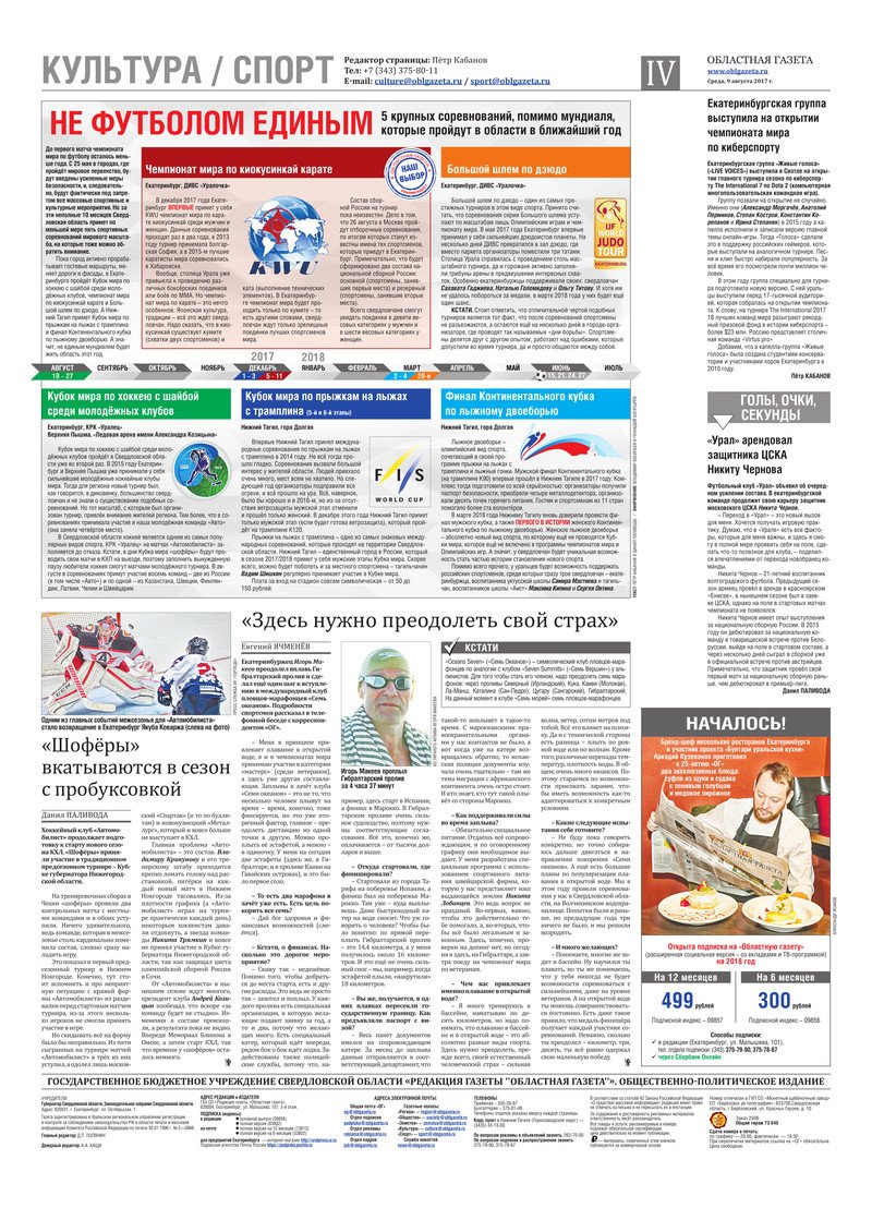 «Областная газета» № 144 (8199) от 9 августа 2017 года
