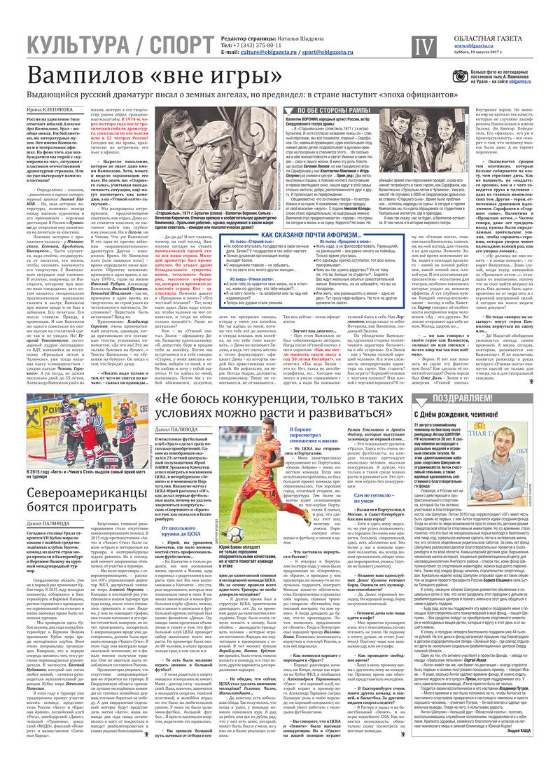 «Областная газета» № 152 (8207) от 19 августа 2017 года