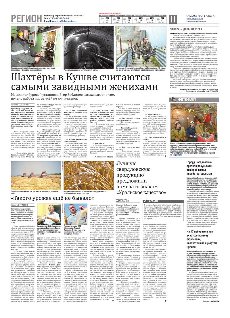 «Областная газета» № 157 (8212) от 26 августа 2017 года