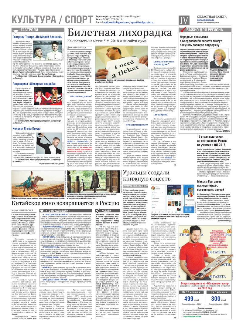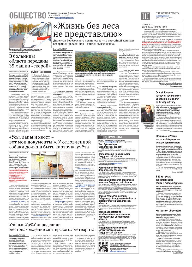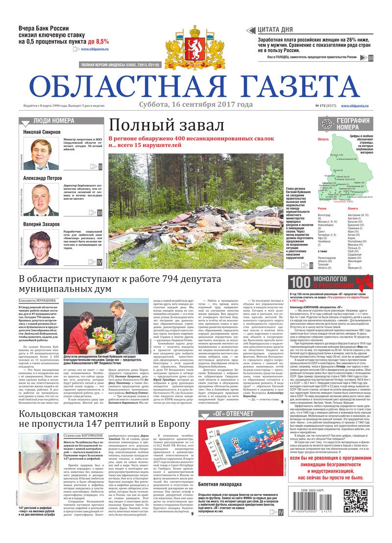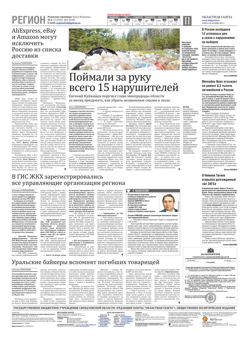 «Областная газета» № 172 (8227) от 16 сентября 2017 года