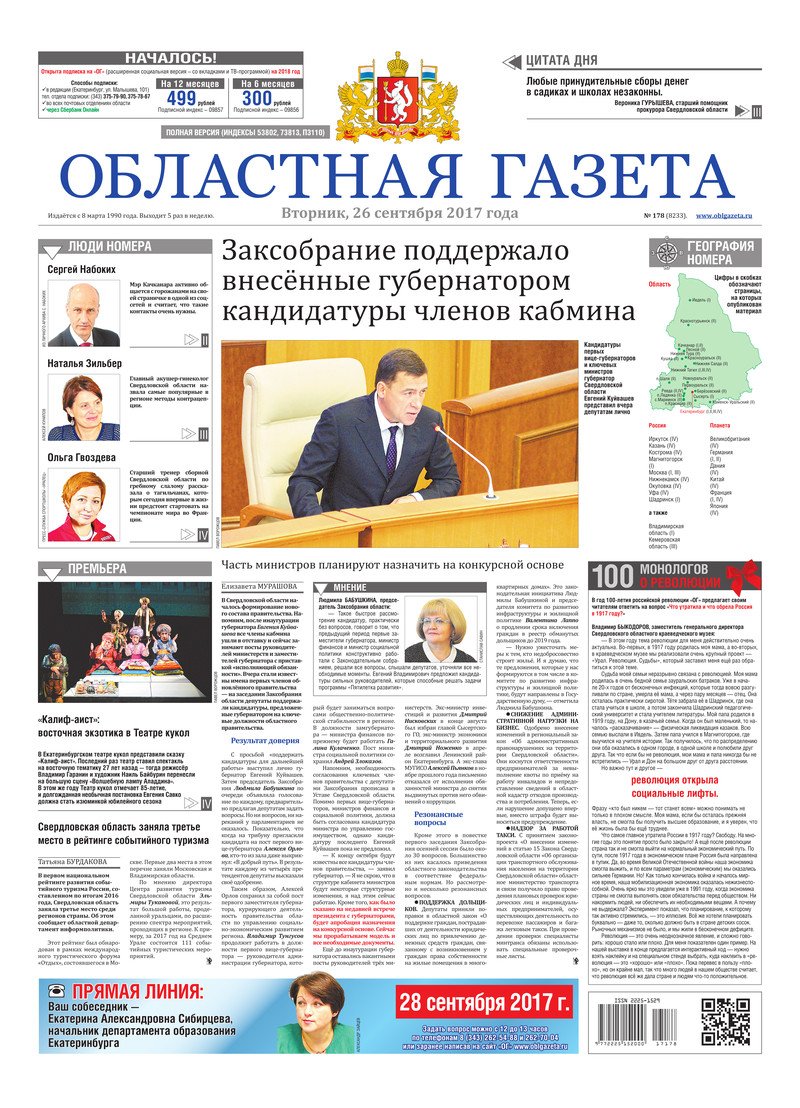 «Областная газета» № 178 (8233) от 26 сентября 2017 года