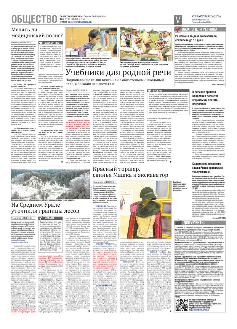 «Областная газета» № 201 (8501) от 1 ноября 2018 года