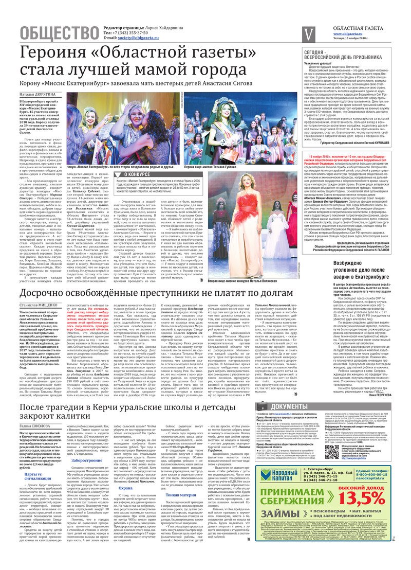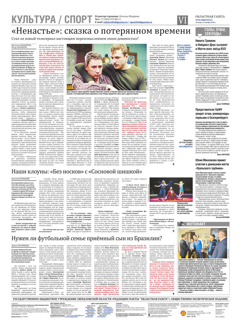 «Областная газета» № 210 (8510) от 15 ноября 2018 года