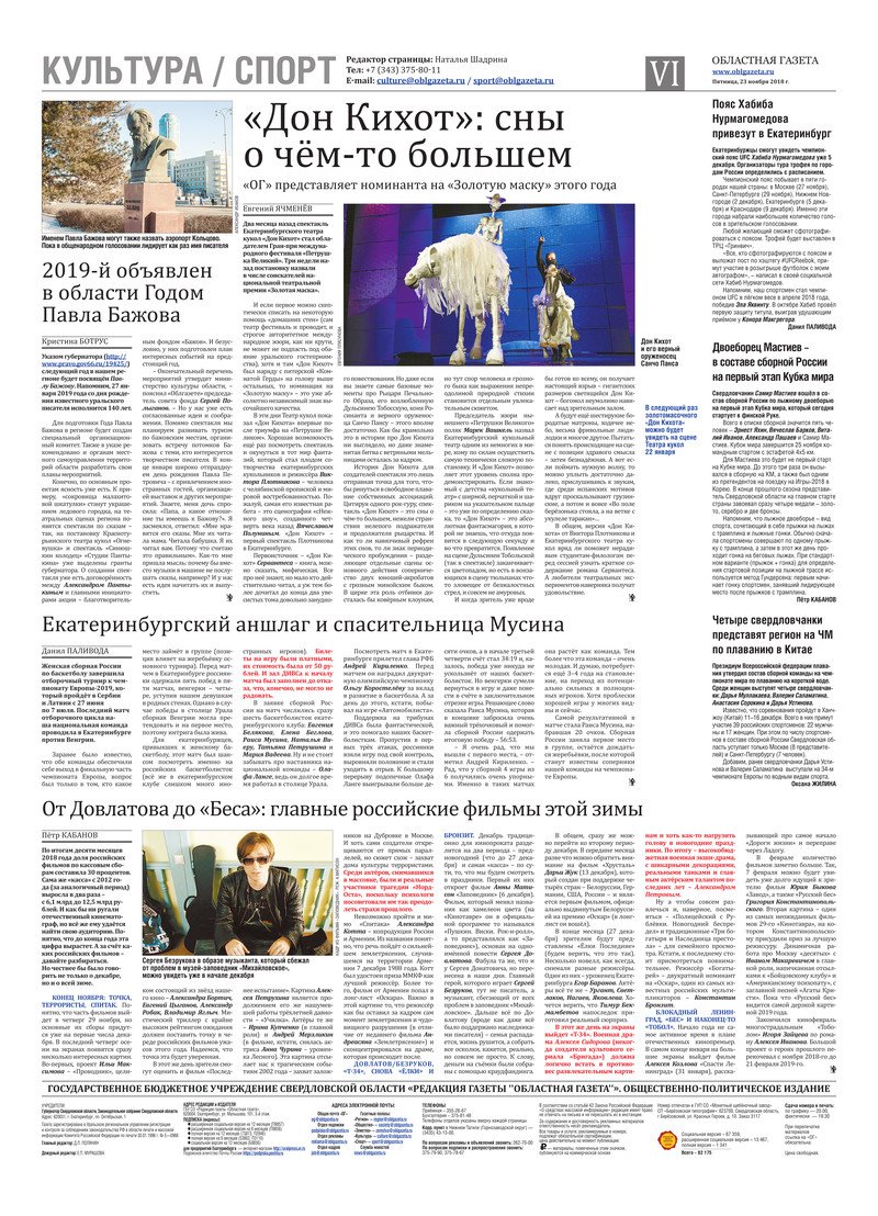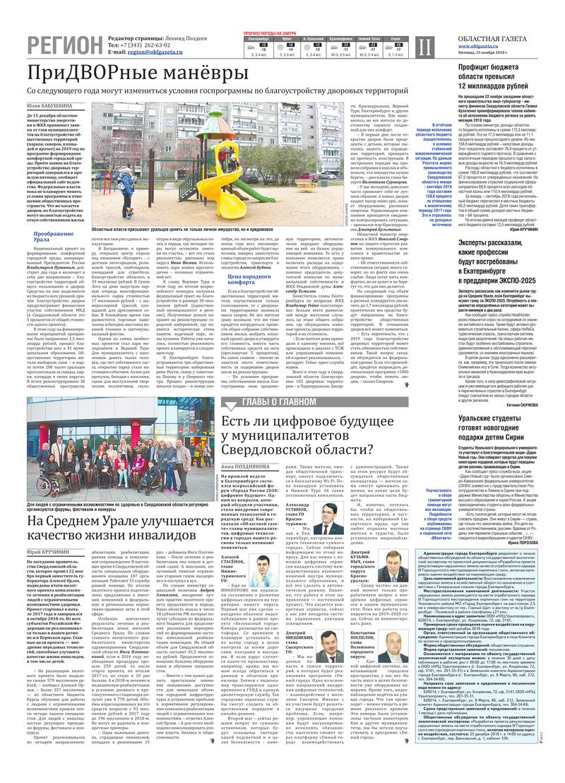 «Областная газета» № 216 (8516) от 23 ноября 2018 года