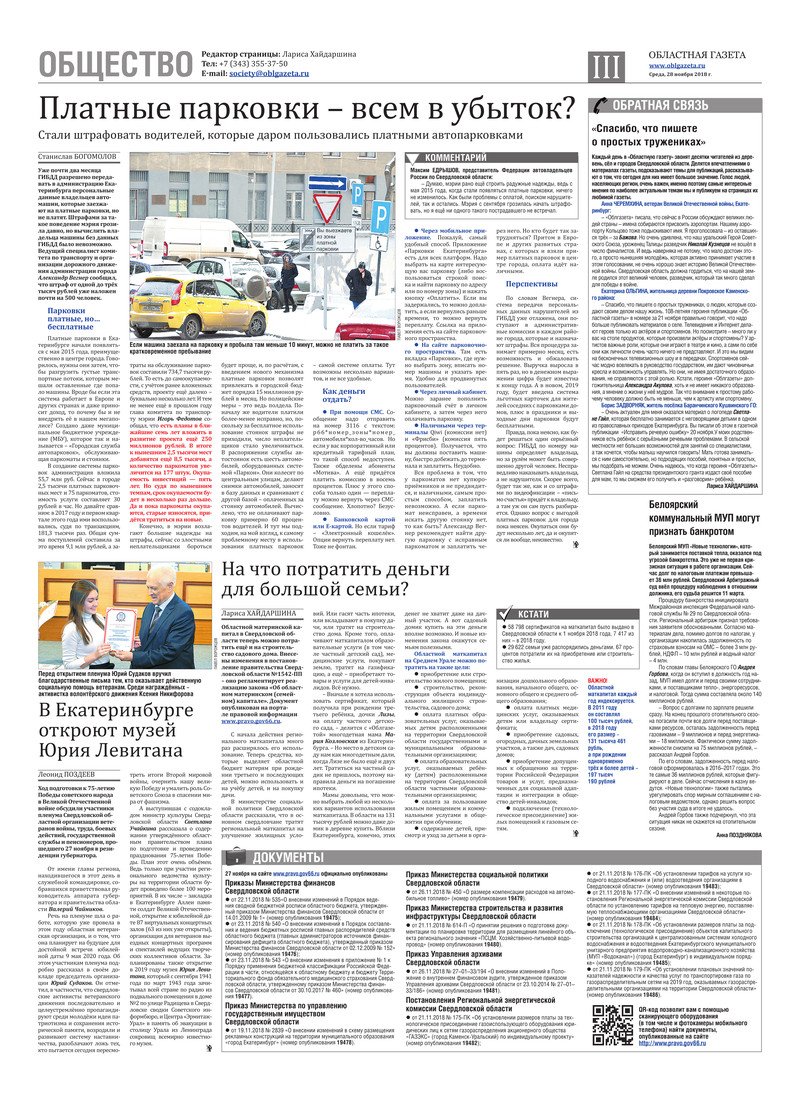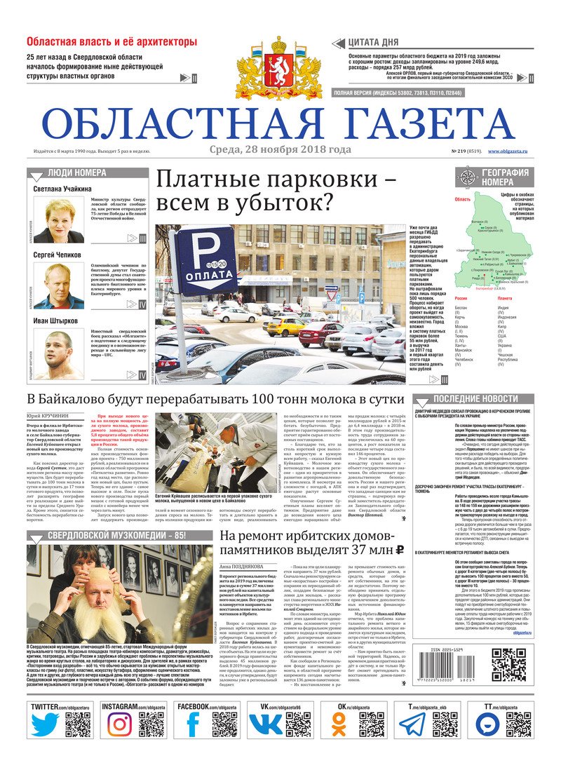 «Областная газета» № 219 (8519) от 28 ноября 2018 года