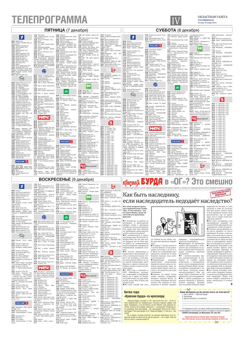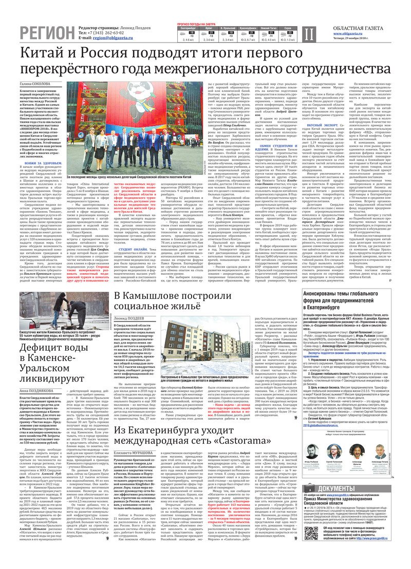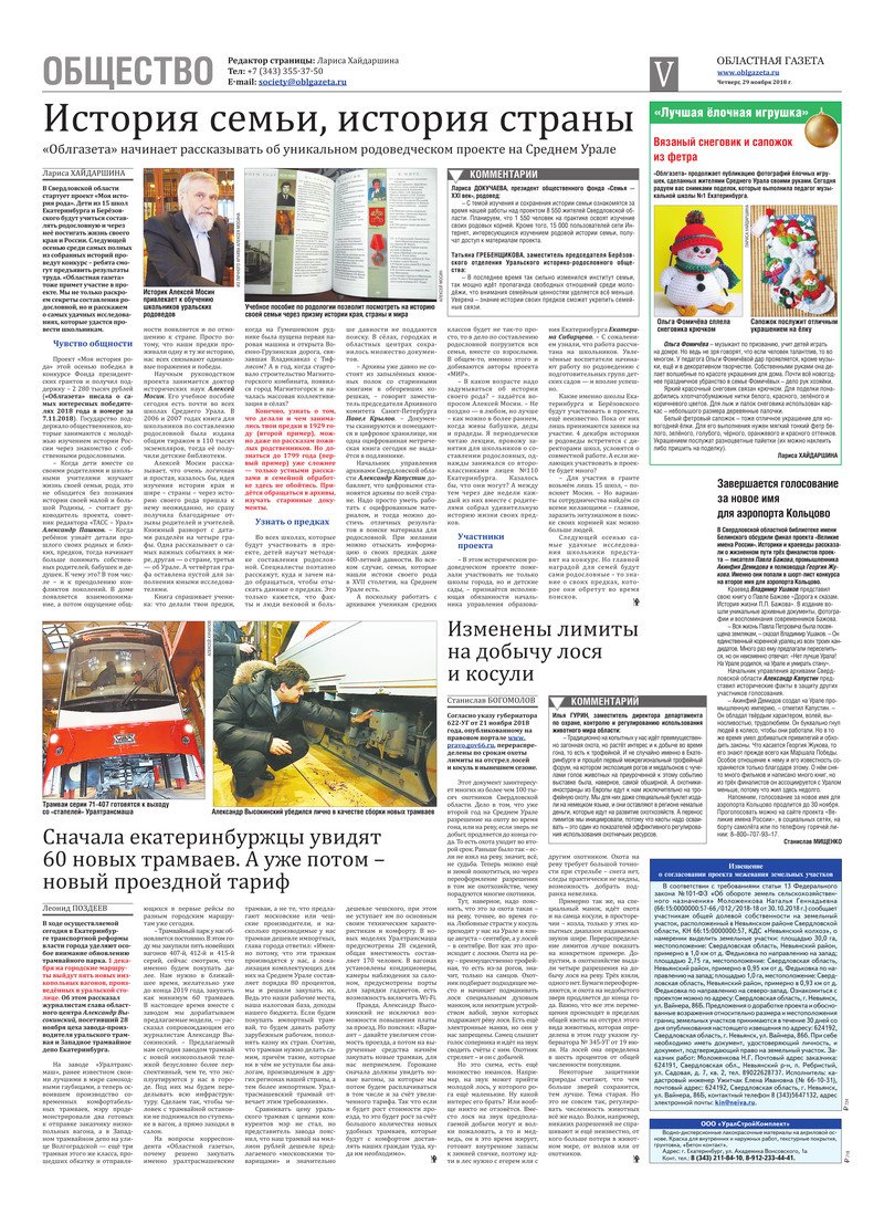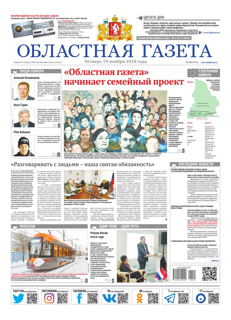 «Областная газета» № 220 (8520) от 29 ноября 2018 года