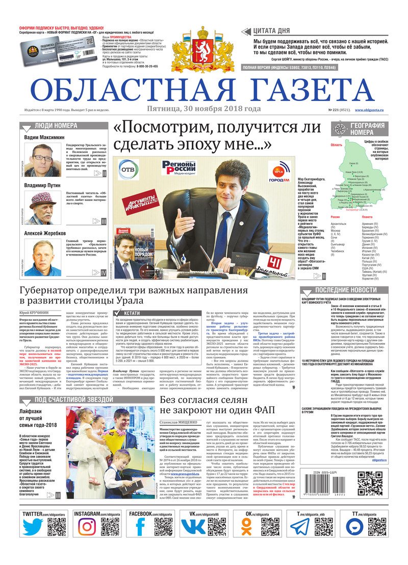 «Областная газета» № 221 (8521) от 30 ноября 2018 года