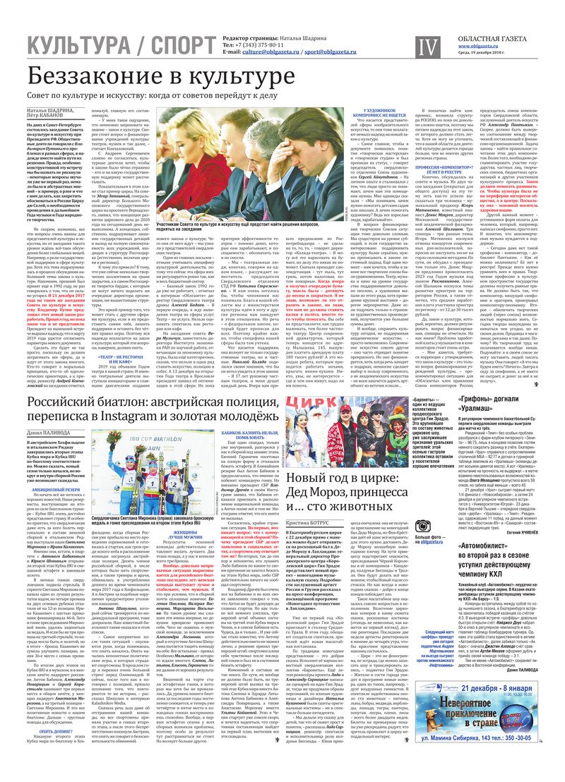 «Областная газета» № 234 (8534) от 19 декабря 2018 года