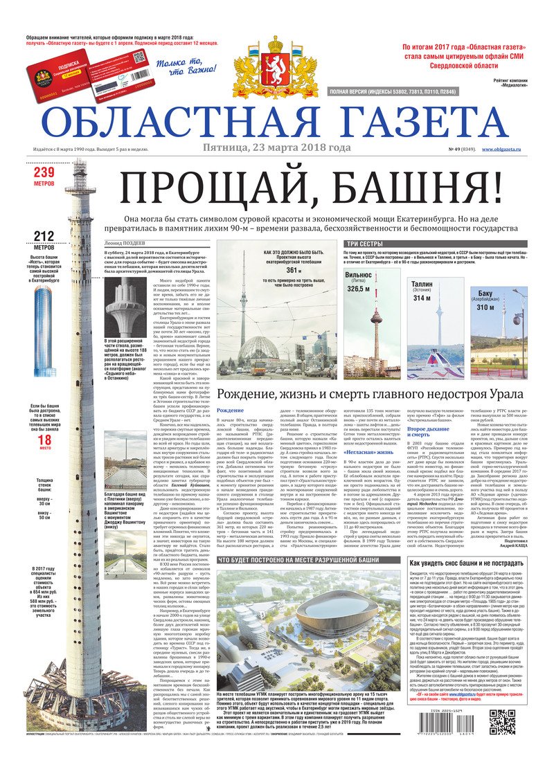 «Областная газета» № 49 (8349) от 23 марта 2018 года