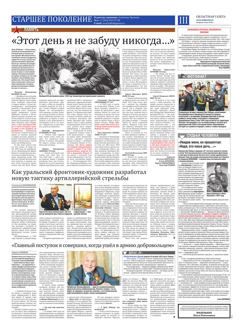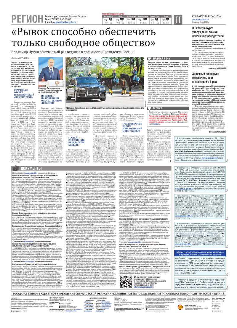 «Областная газета» № 78 (8378) от 8 мая 2018 года