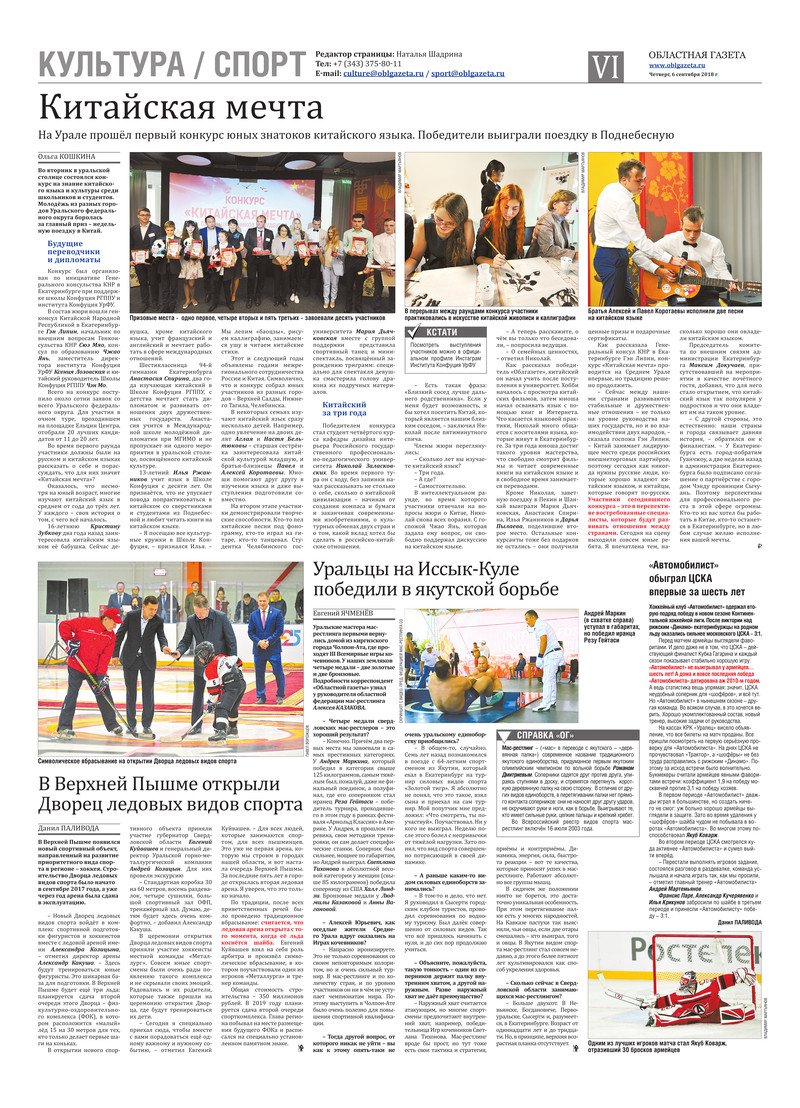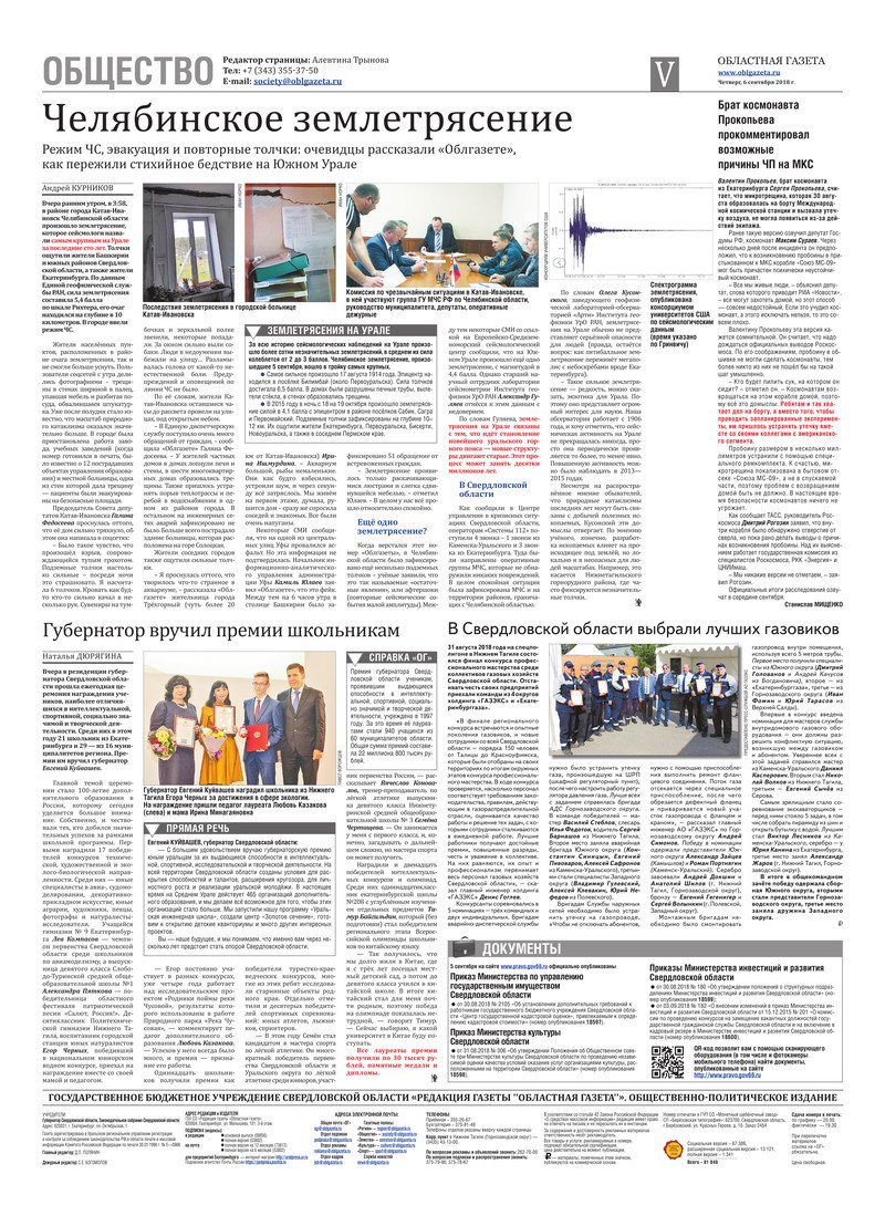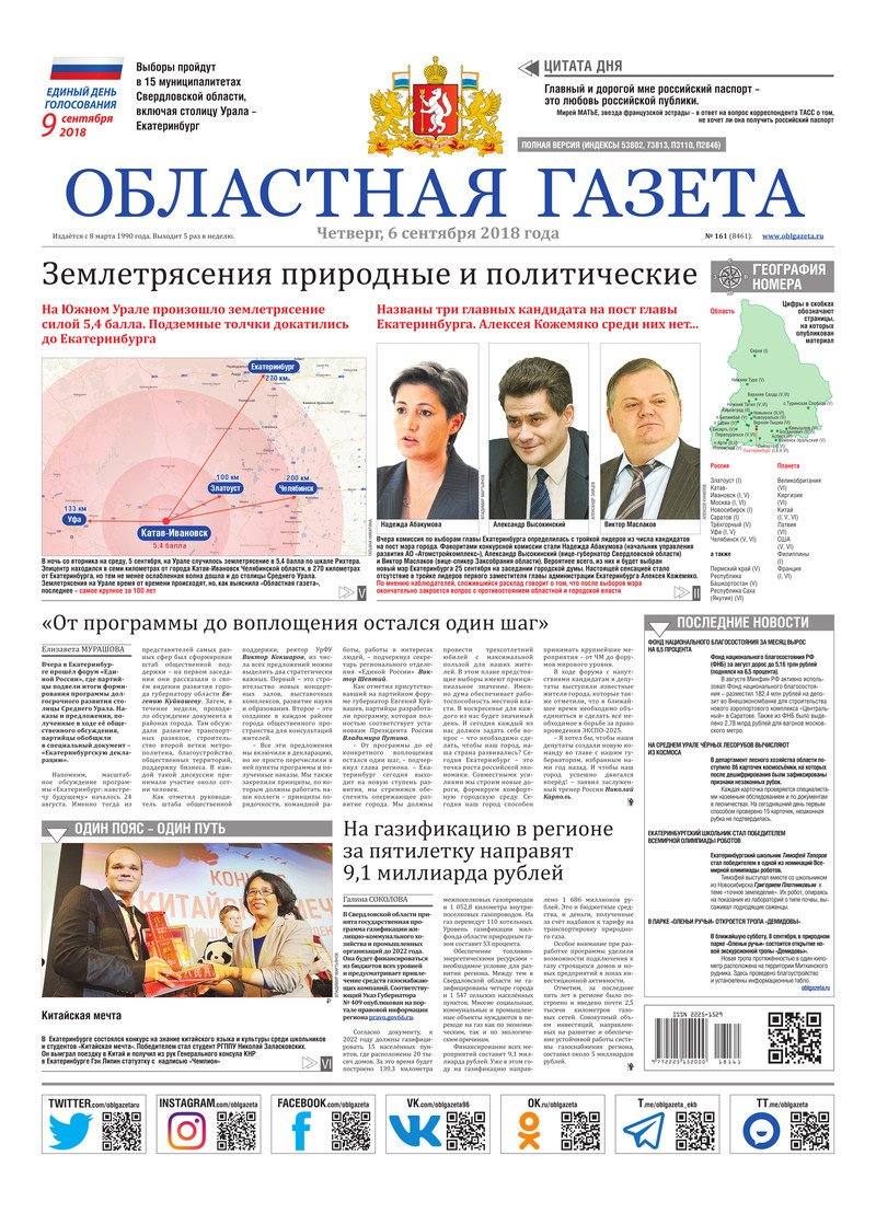«Областная газета» № 161 (8461) от 6 сентября 2018 года