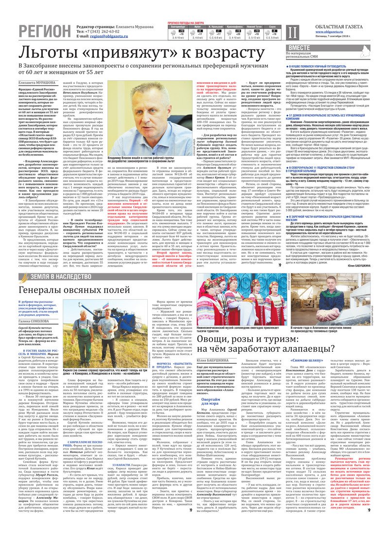 «Областная газета» № 162 (8462) от 7 сентября 2018 года