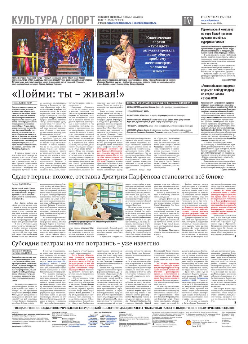 «Областная газета» № 170 (8470) от 19 сентября 2018 года